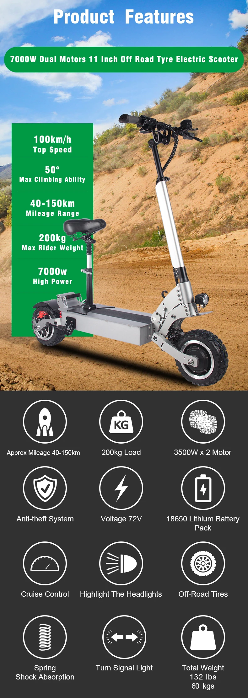 Отзывы о Спортивные складные взрослые электрические скутеры 60 в/5600 Вт с двойным мотором и