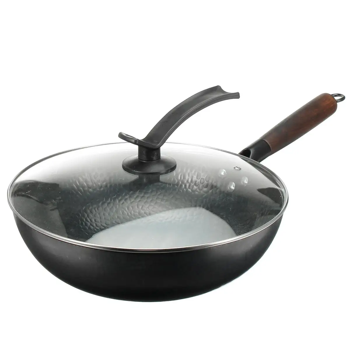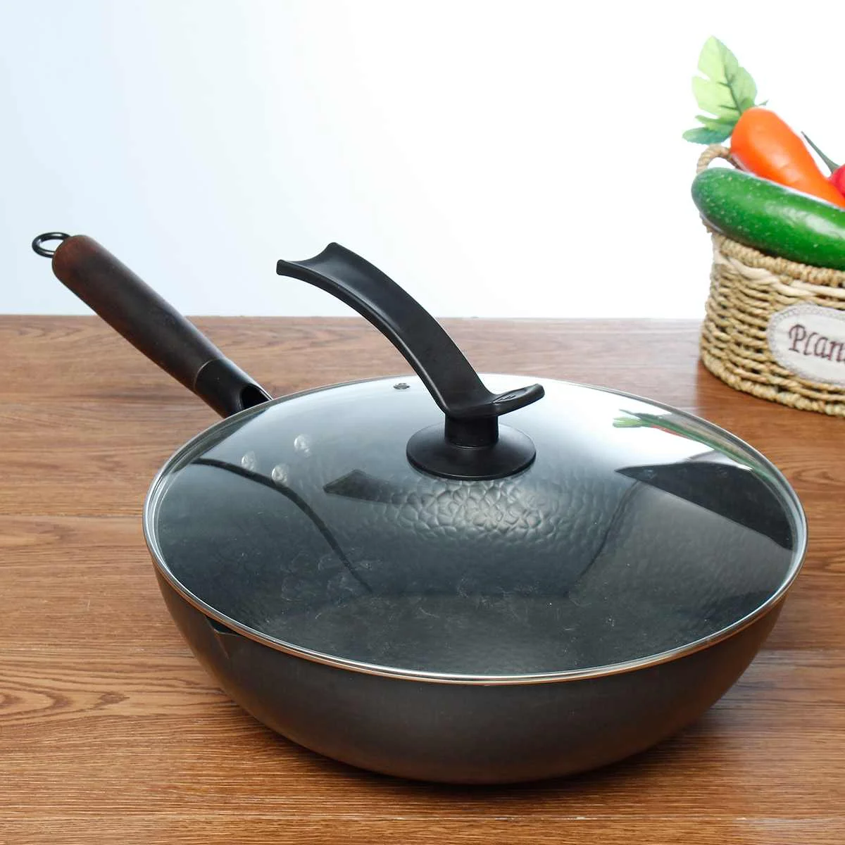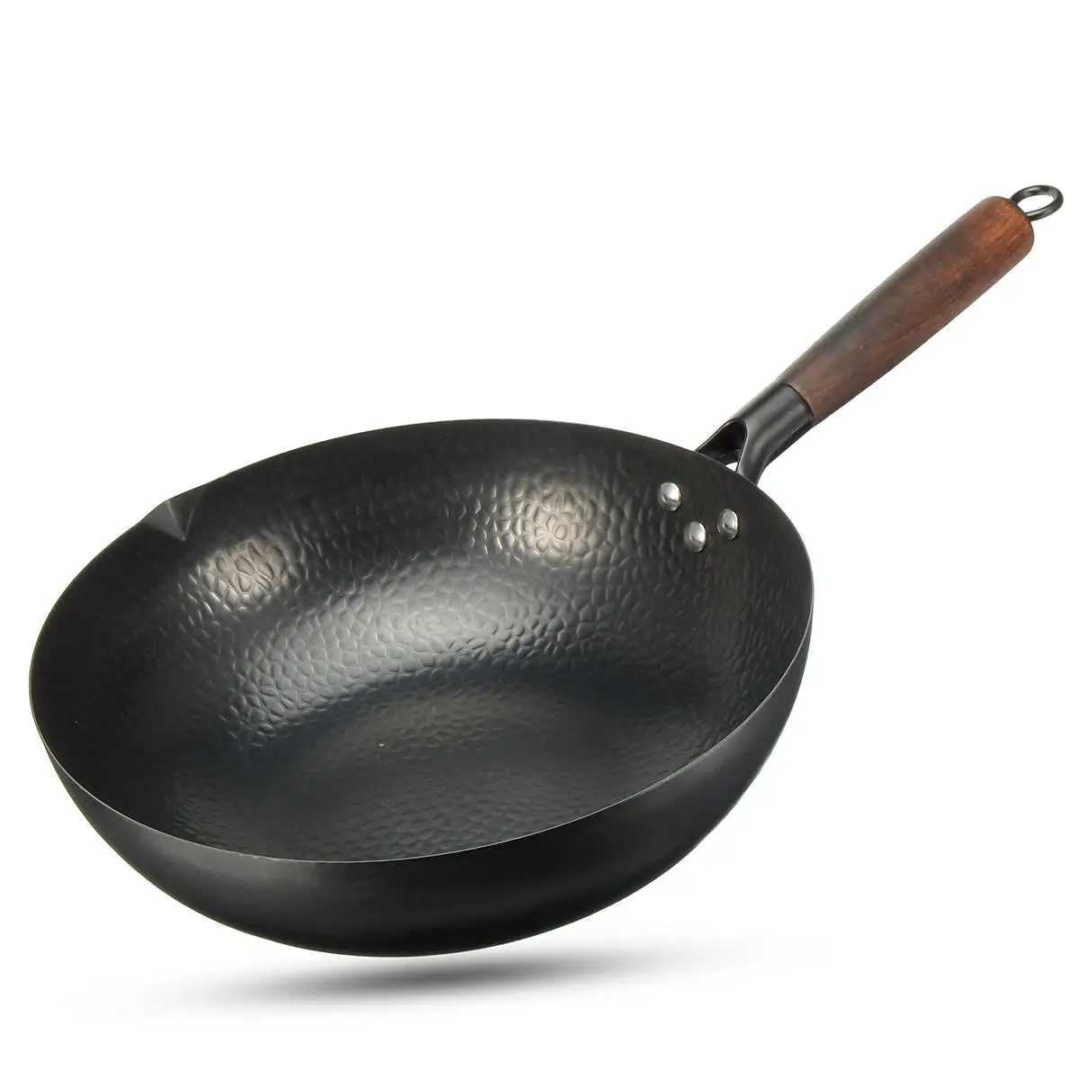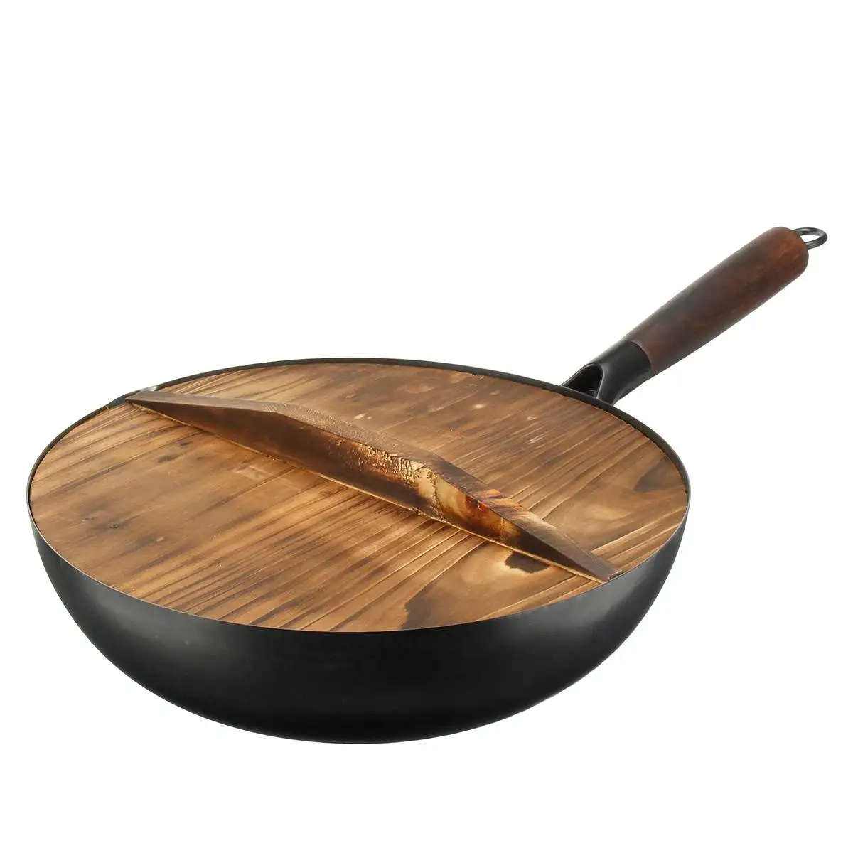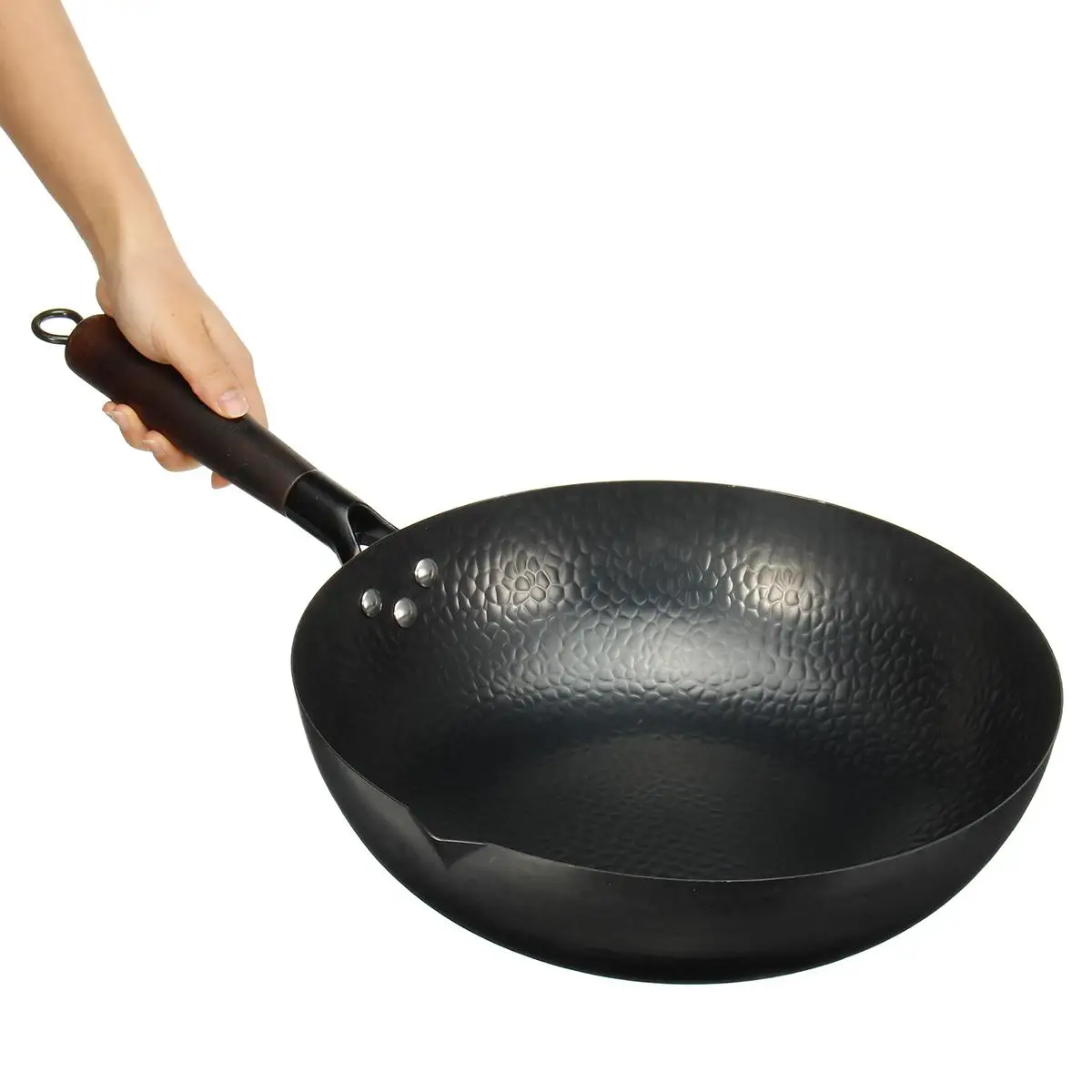 ● Изготовлен из кованого железа и деревянной ручки, хорошая теплопроводность, равномерно нагревает еду. Непокрытая, прочная, долговечная посуда.