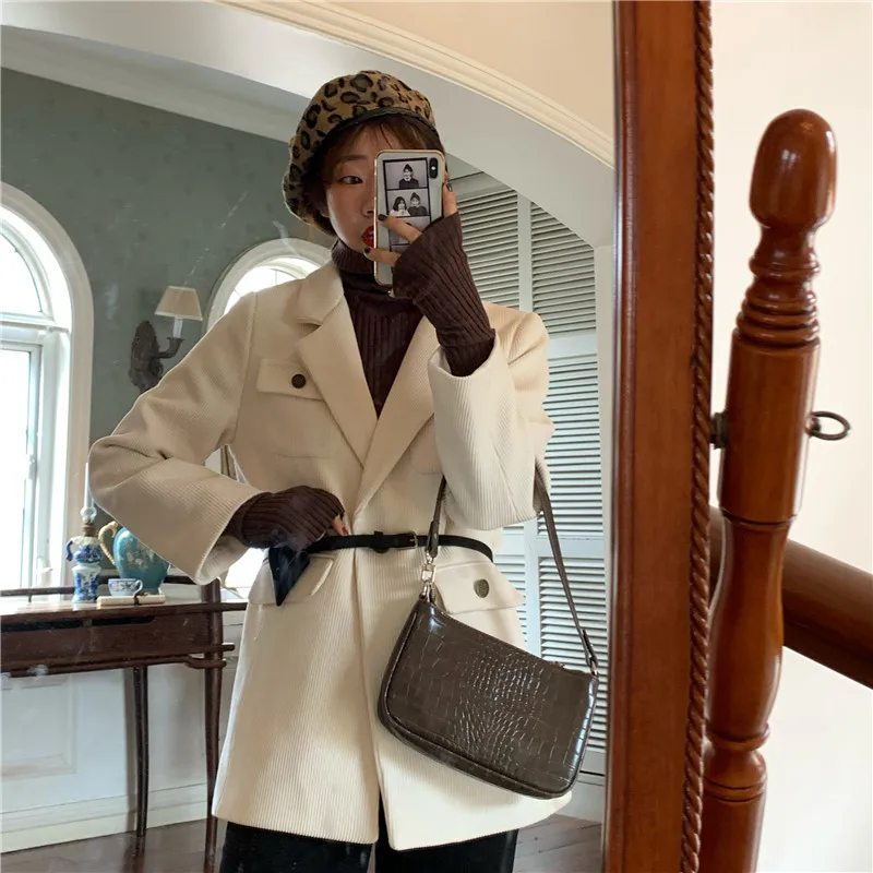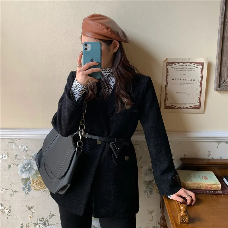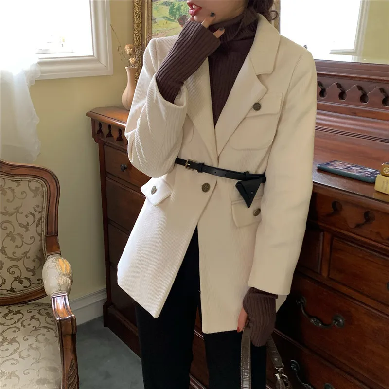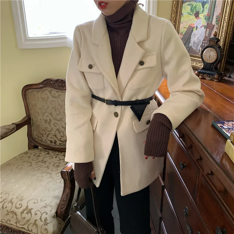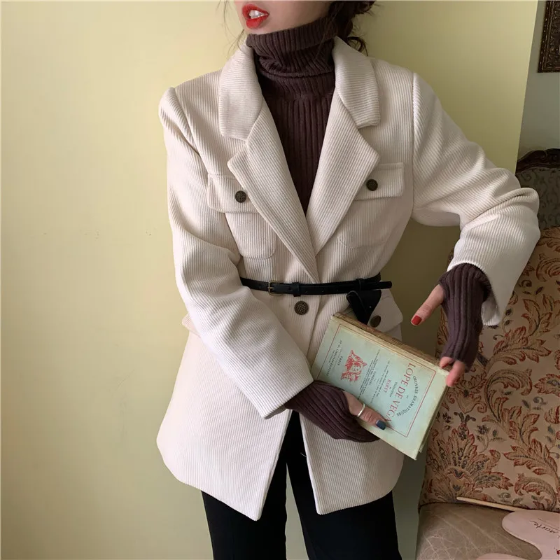 Отзывы о VICONE винтажный женский вельветовый Блейзер куртка с поясом весна 2020 тонкий