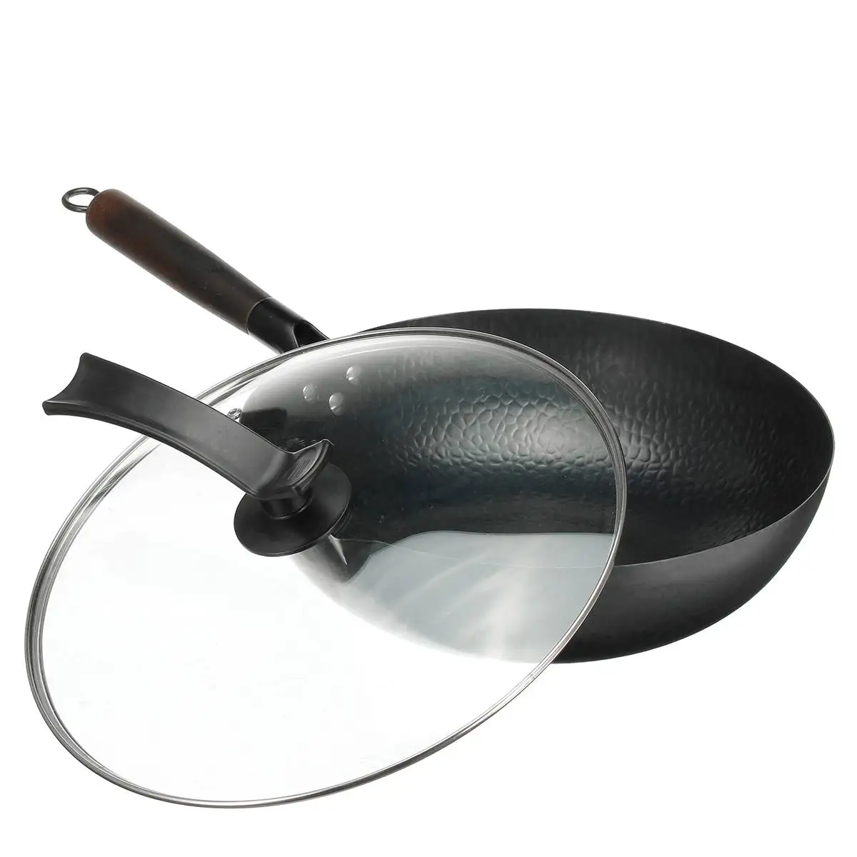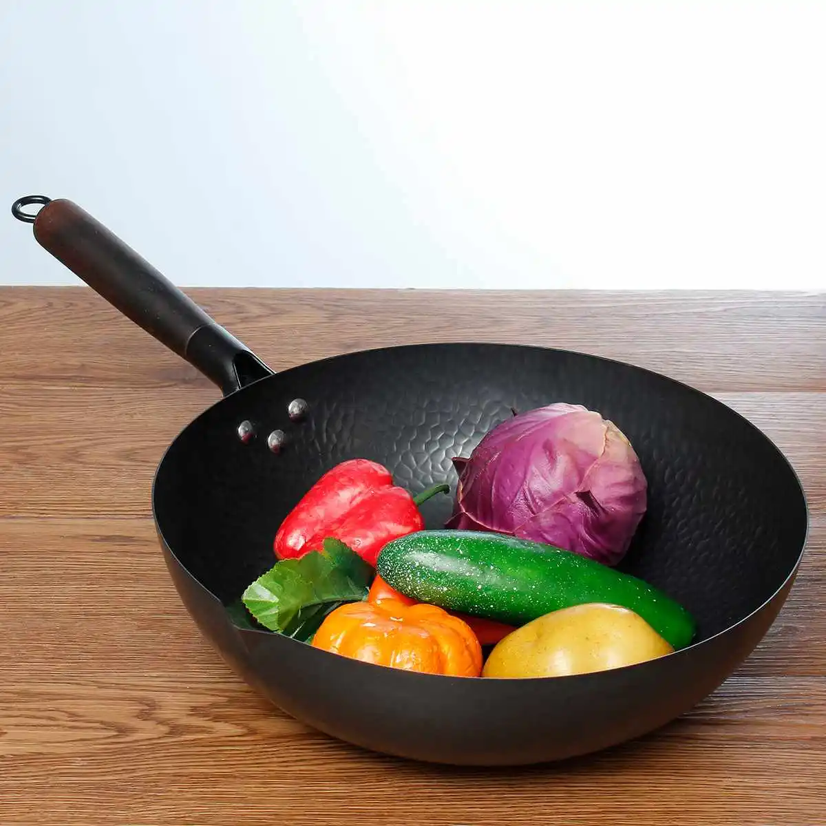 Отзывы о 32 см ручная китайская железная сковорода без покрытия кухонная с антипригарным