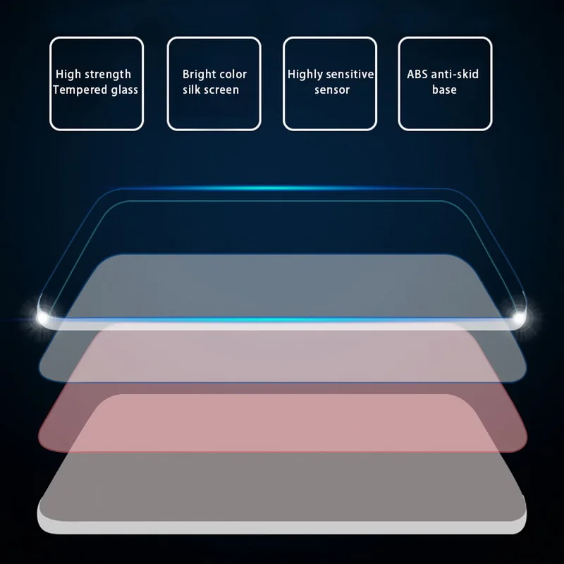 << Safety and comfort: Durable tempered glass provides superior sturdiness. Large anti-slip weighing platform, make you feel enjoyable when you're measuring.