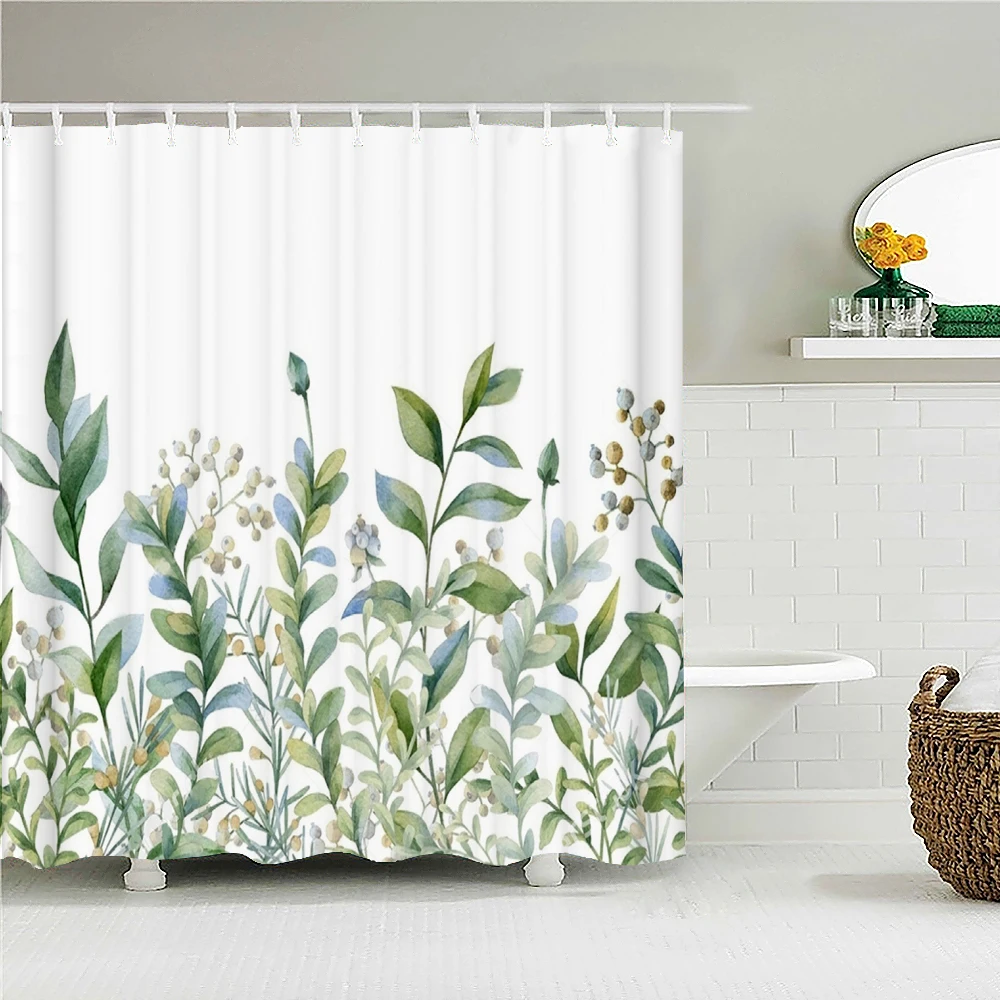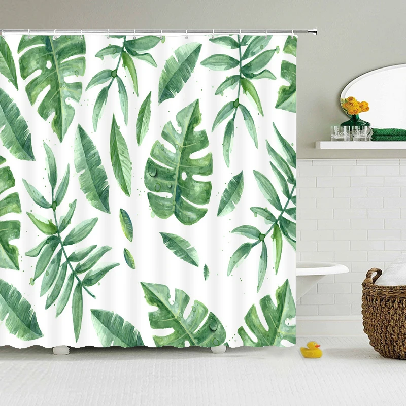 Зеленые листья растений свежая ванная занавеска для душа цветок для ванной занавеска Водонепроницаемая полиэфирная ткань белый домашний декор с крючками