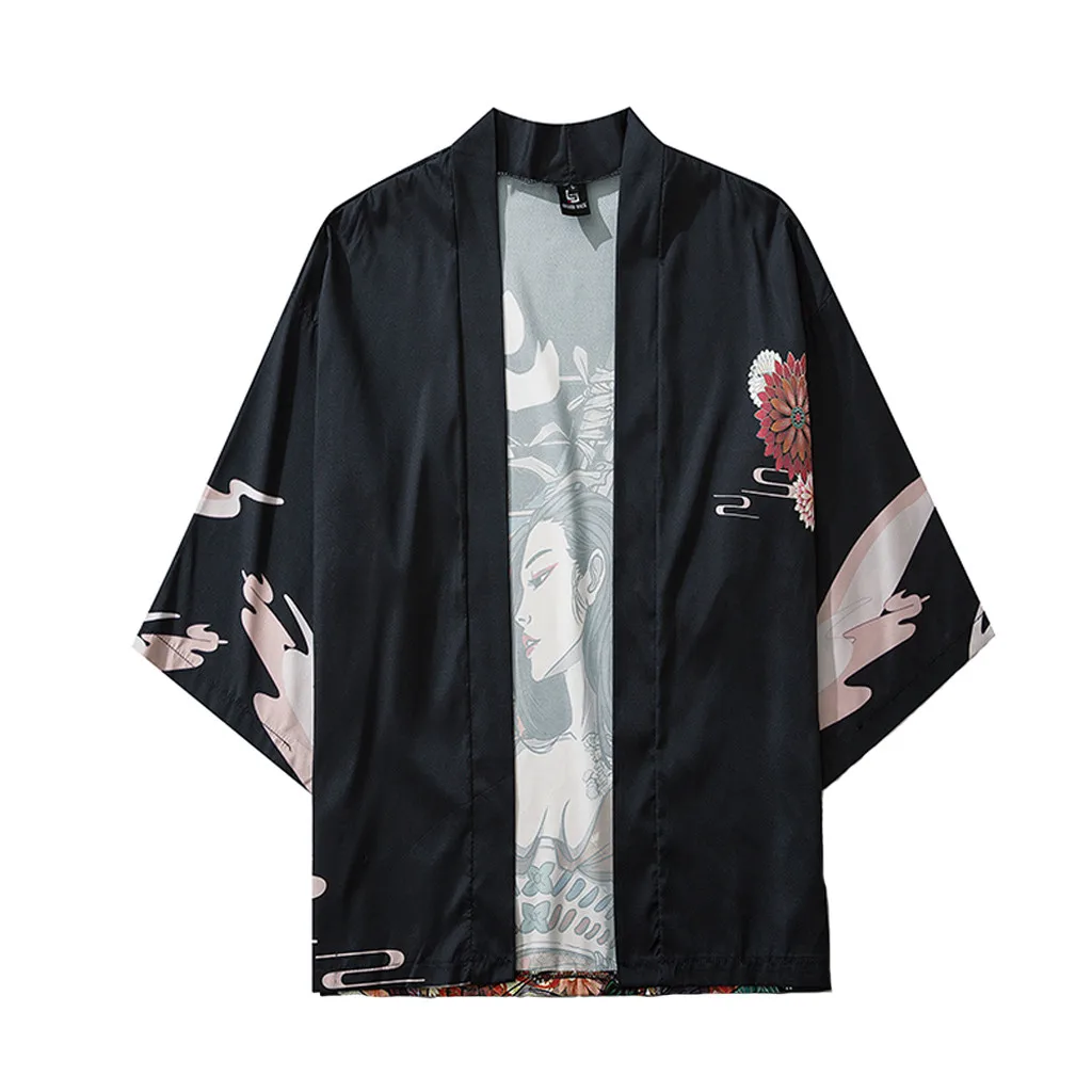 Летние японские пятиточечный кимоно с рукавами мужские и женские плащ куртка Блуза Топ