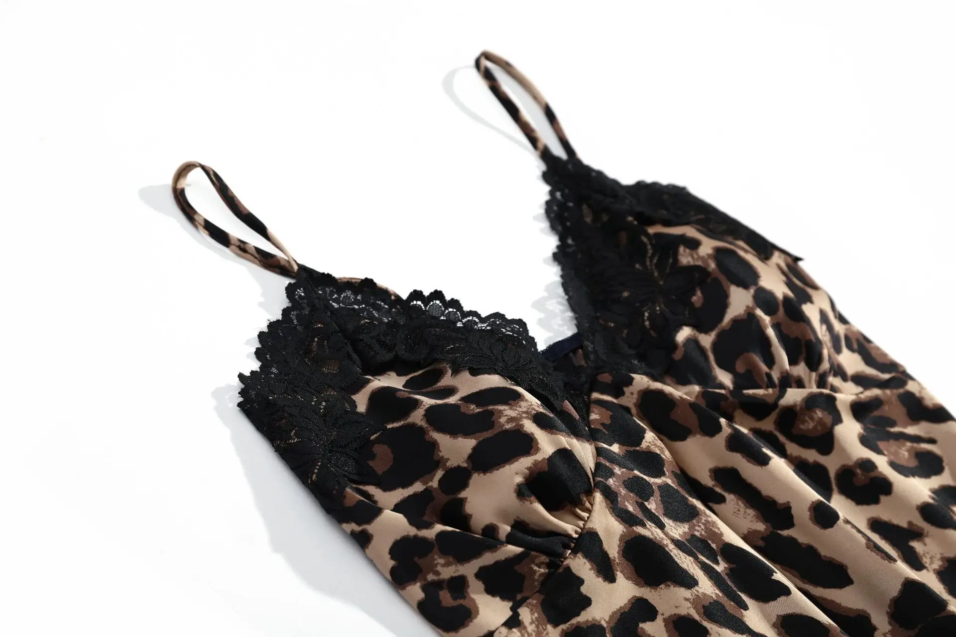 Отзывы о Женская пижама атласная кружевная Пижама с леопардовым принтом пижамный