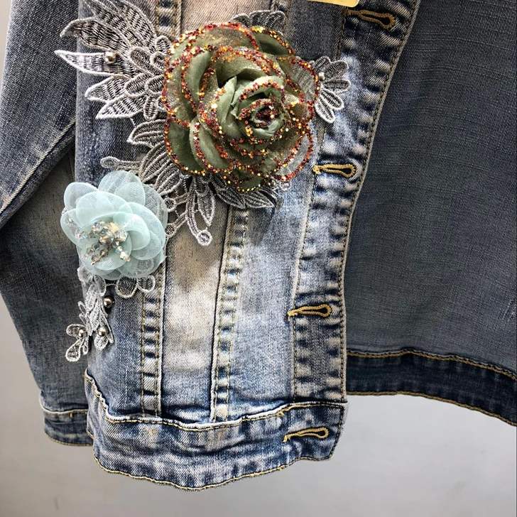 Отзывы о Весенняя Женская Осенняя мода 2020 ковбойская куртка трехмерный цветок бронзовая