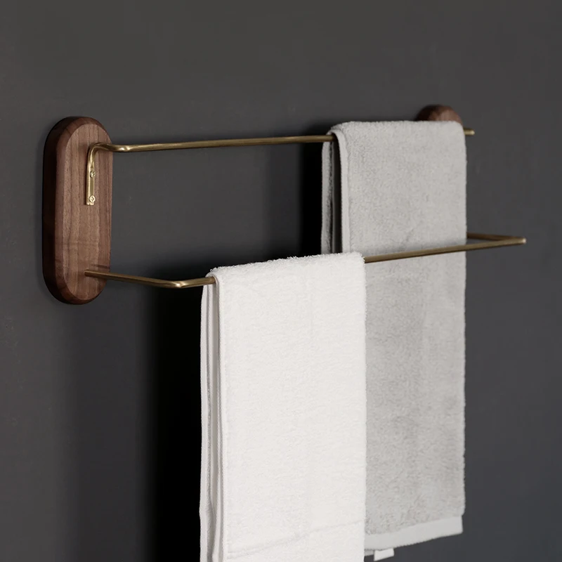 Латунная вешалка для полотенец в скандинавском стиле из черного ореха, двухслойный настенный держатель для хранения, полка для ванной, Домашний Органайзер, декор для гостиницы, ресторана