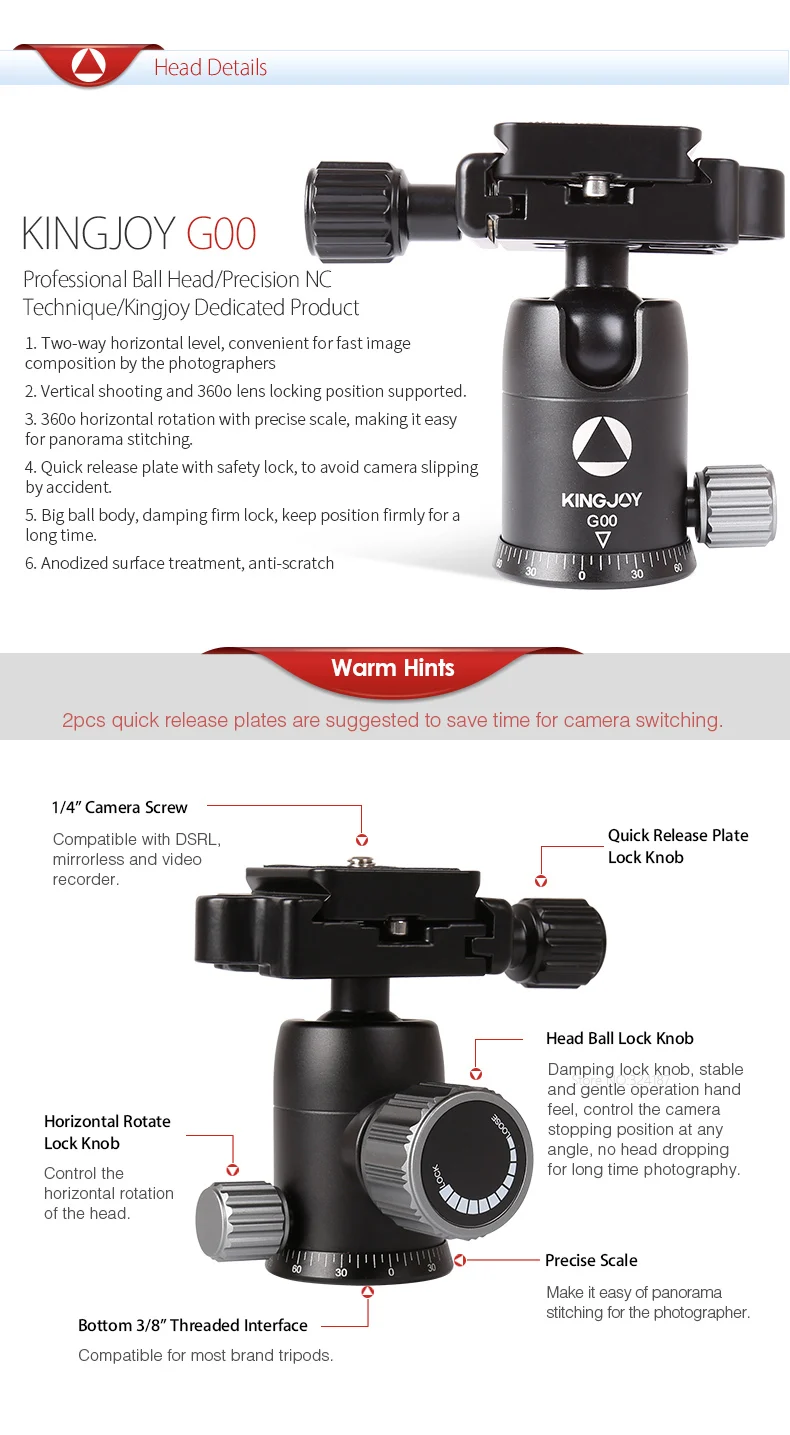 Отзывы о Профессиональный алюминиевый штатив KINGJOY G22 гибкий монопод подставка для камеры