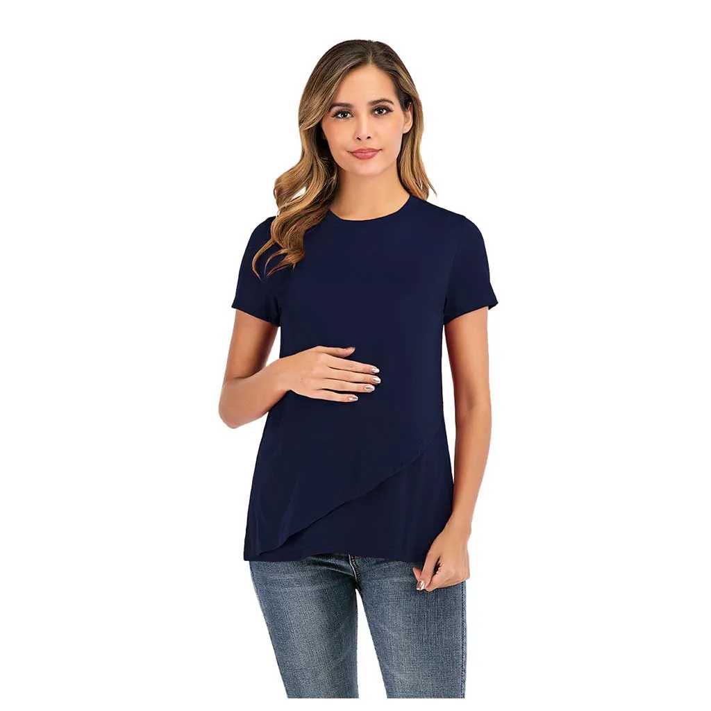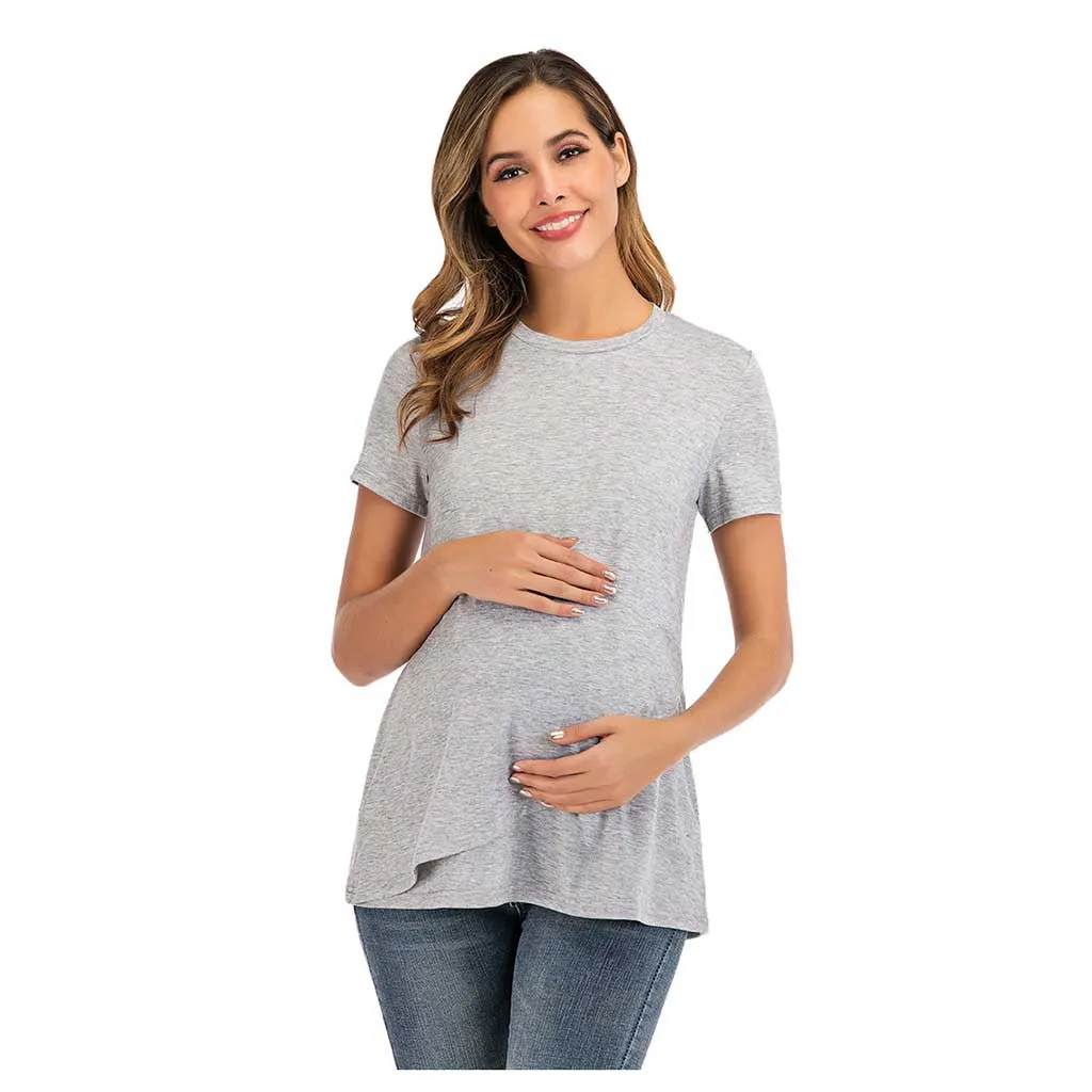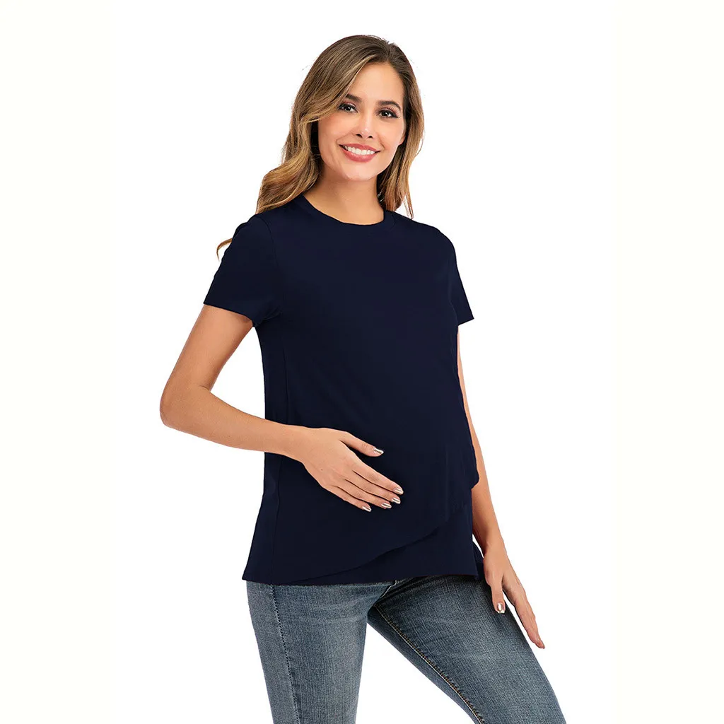 Женская блузка для кормления грудью с круглым вырезом и коротким рукавом