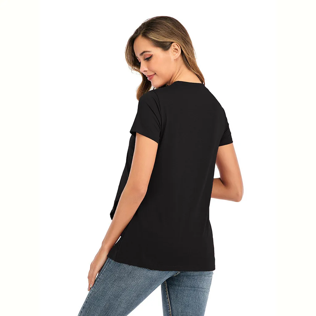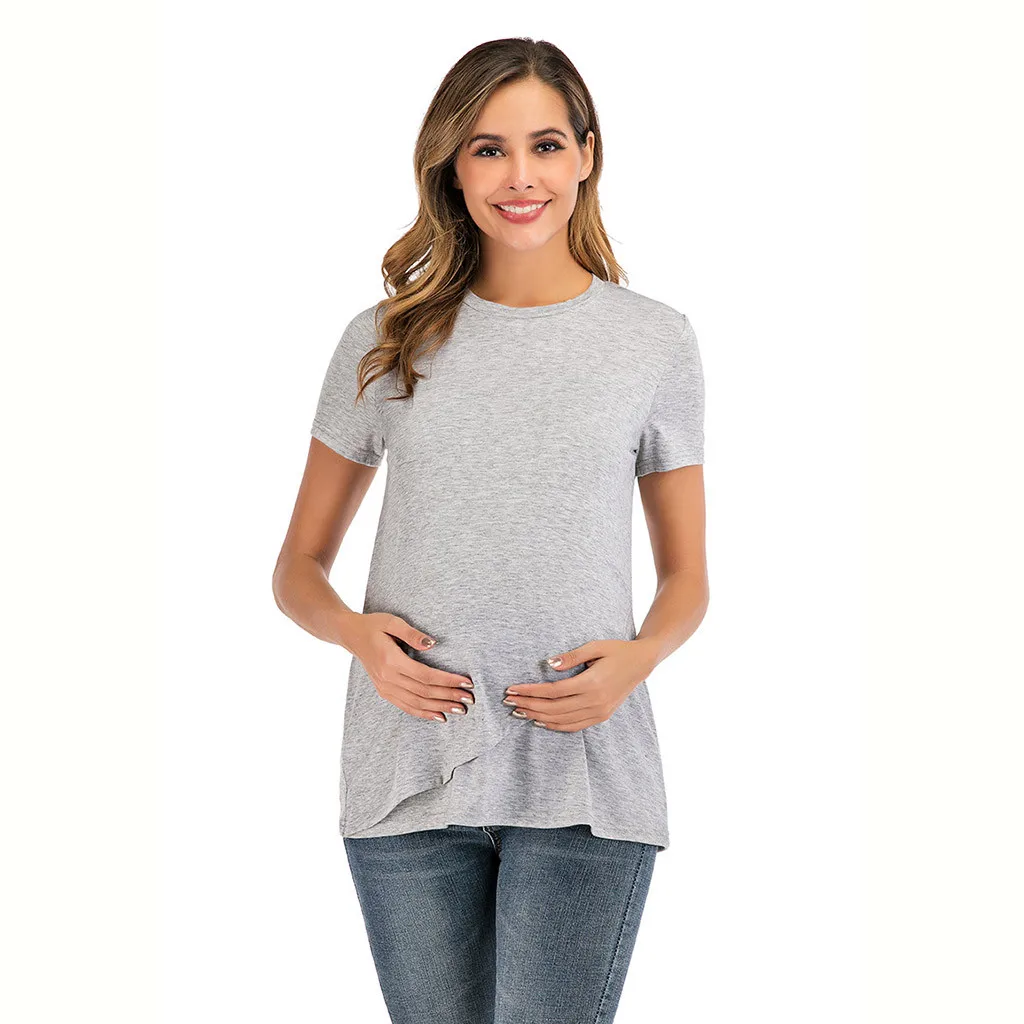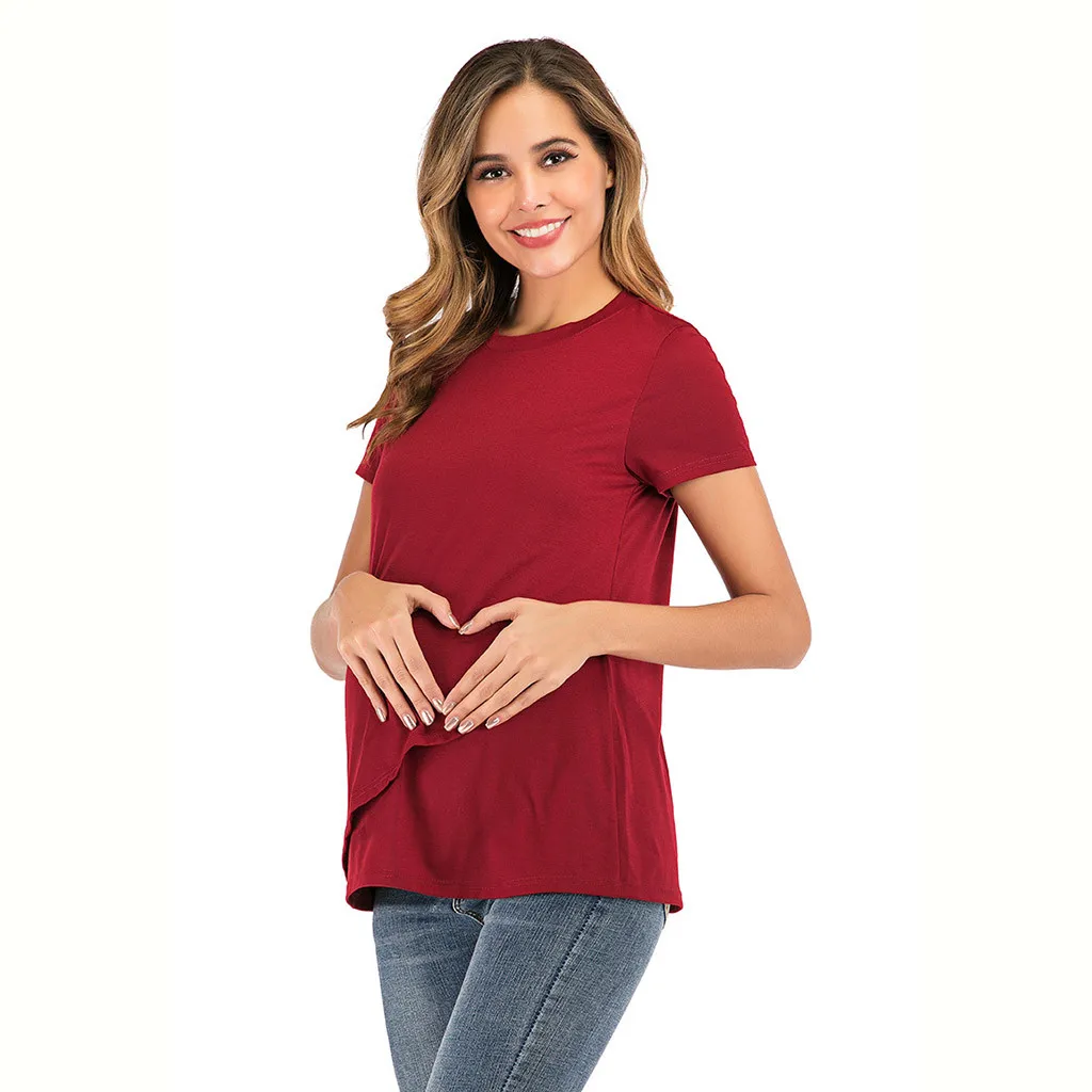 Женская блузка для кормления грудью с круглым вырезом и коротким рукавом