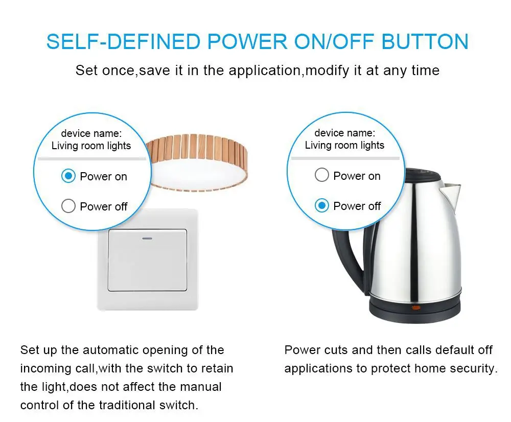 Совместим с любыми бытовыми приборами (100-240 В переменного тока, максимальный ток 10А, максимальная мощность 2200 Вт). Небольшой модуль имеет возможность DIY для пользователей с базовыми знаниями электрика