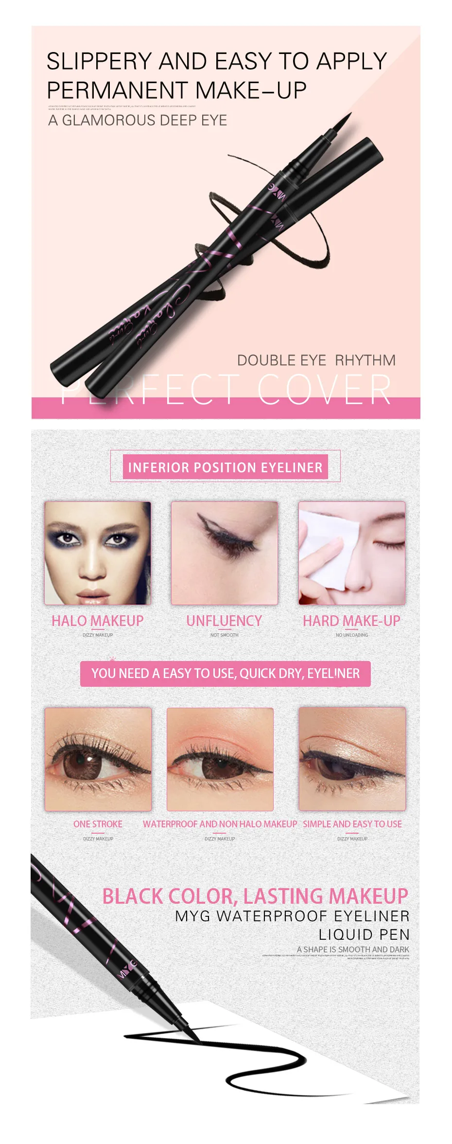 Отзывы о Жидкая подводка для глаз MYG держится 24 часа очень тонкая Черная Подводка карандаш