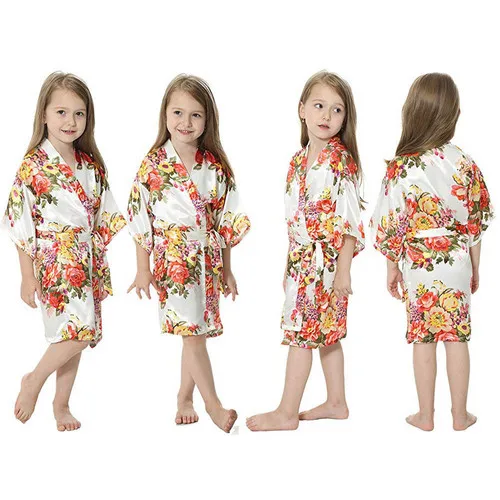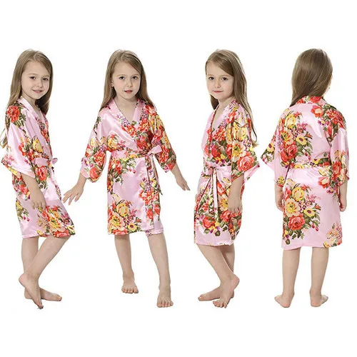 Детские шелковые пижамы; Одежда для сна для девочек; Цветочное кимоно; Ночная рубашка