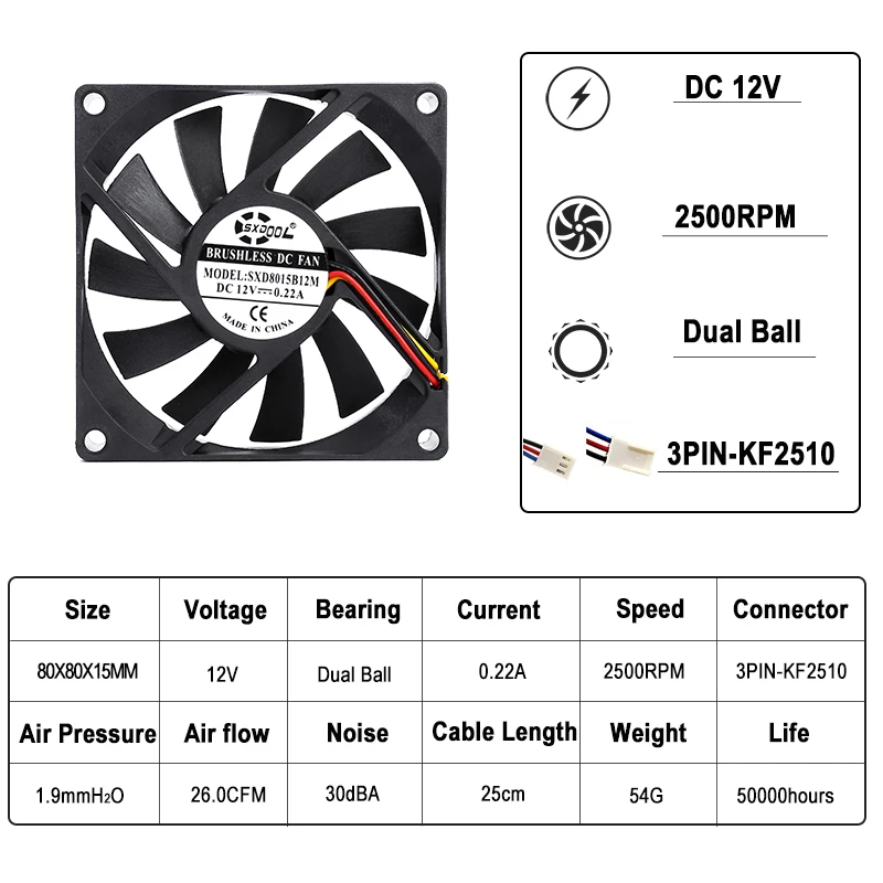Отзывы о 2pcs SXDOOL 8015 Dual Ball fan 12V 3-Pin tach PC Computer Fan 80mm 8cm 0.22A Chassis Power case axial Cooling Fans - купить по