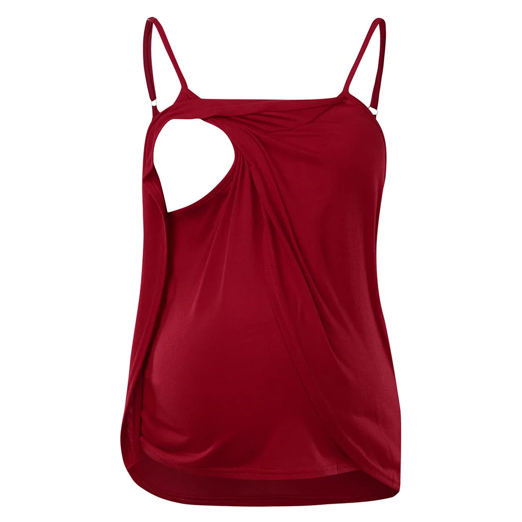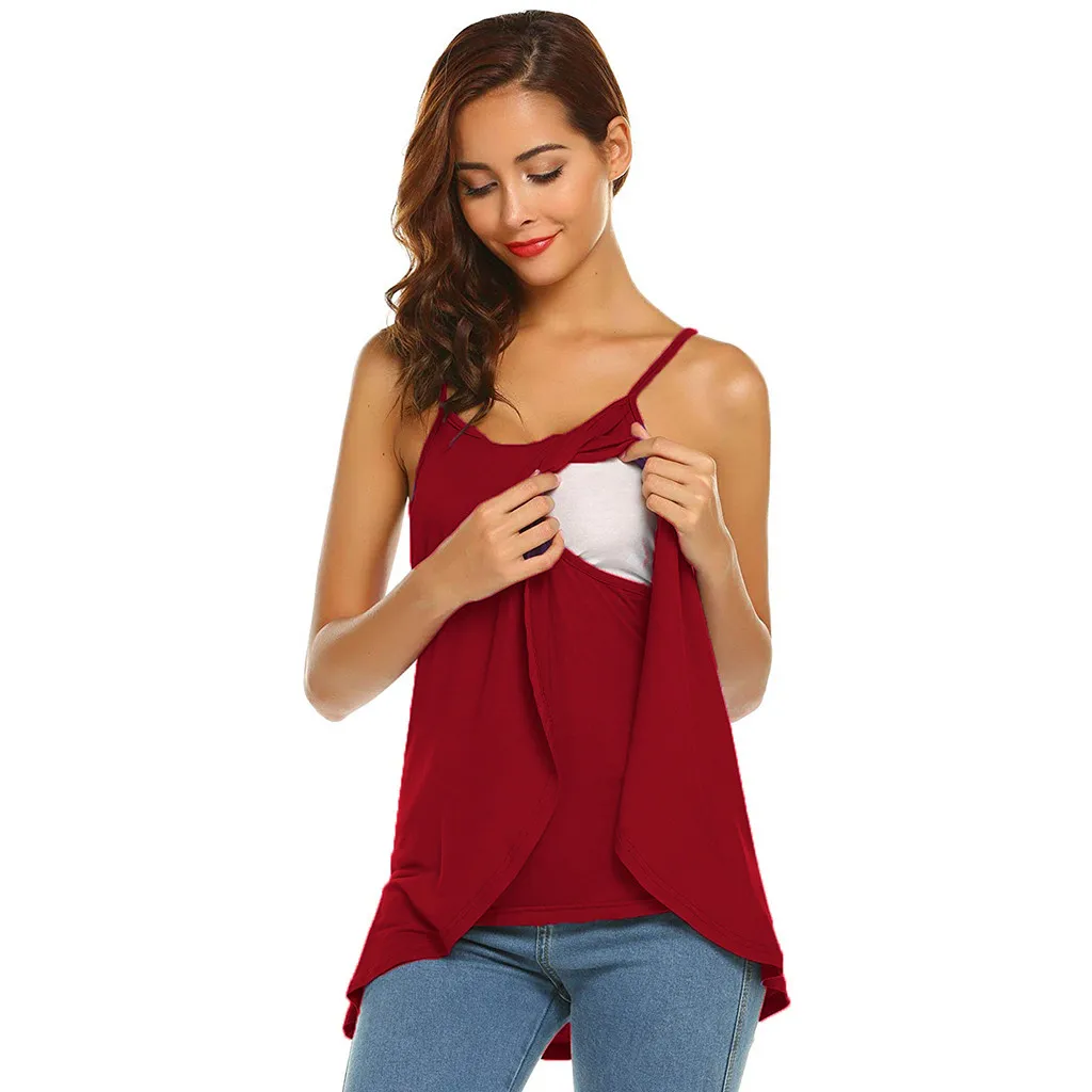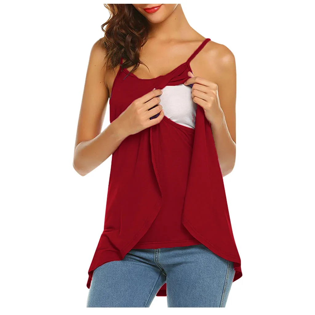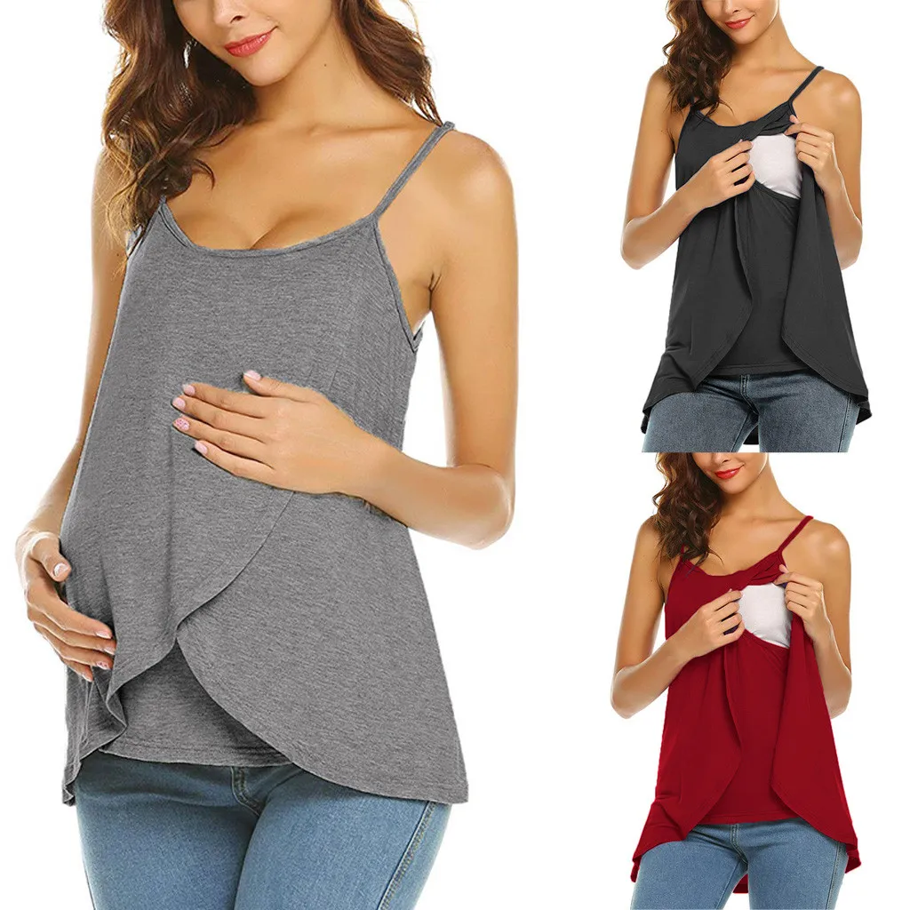 Женский топ без рукавов с запахом для беременных, двухслойный однотонный топ на бретелях