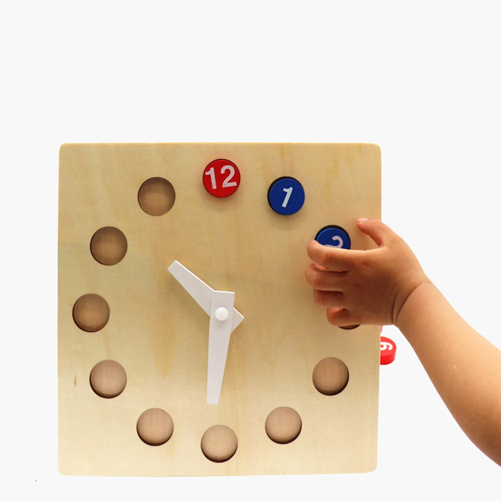Ребенок вставляет соответствующее положение в соответствии с его номером, чтобы узнать цифры и знать часы.