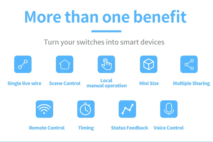 Это компактный и компактный смарт-переключатель DIY, используемый для различных видов коробок переключения, удобный для автоматизации вашей бытовой техники с приложением eWeLink через ваш смартфон.