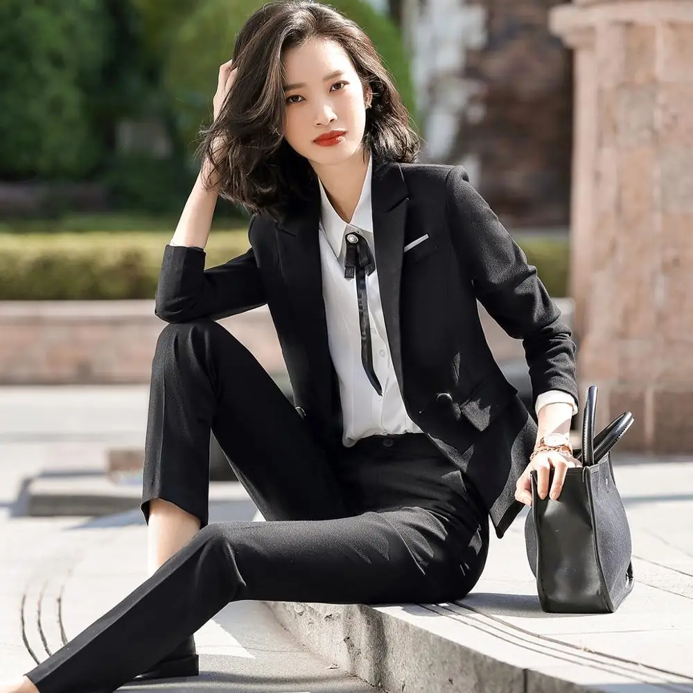 Отзывы о Женский брючный костюм из трех предметов серый черный темно-синий блейзера