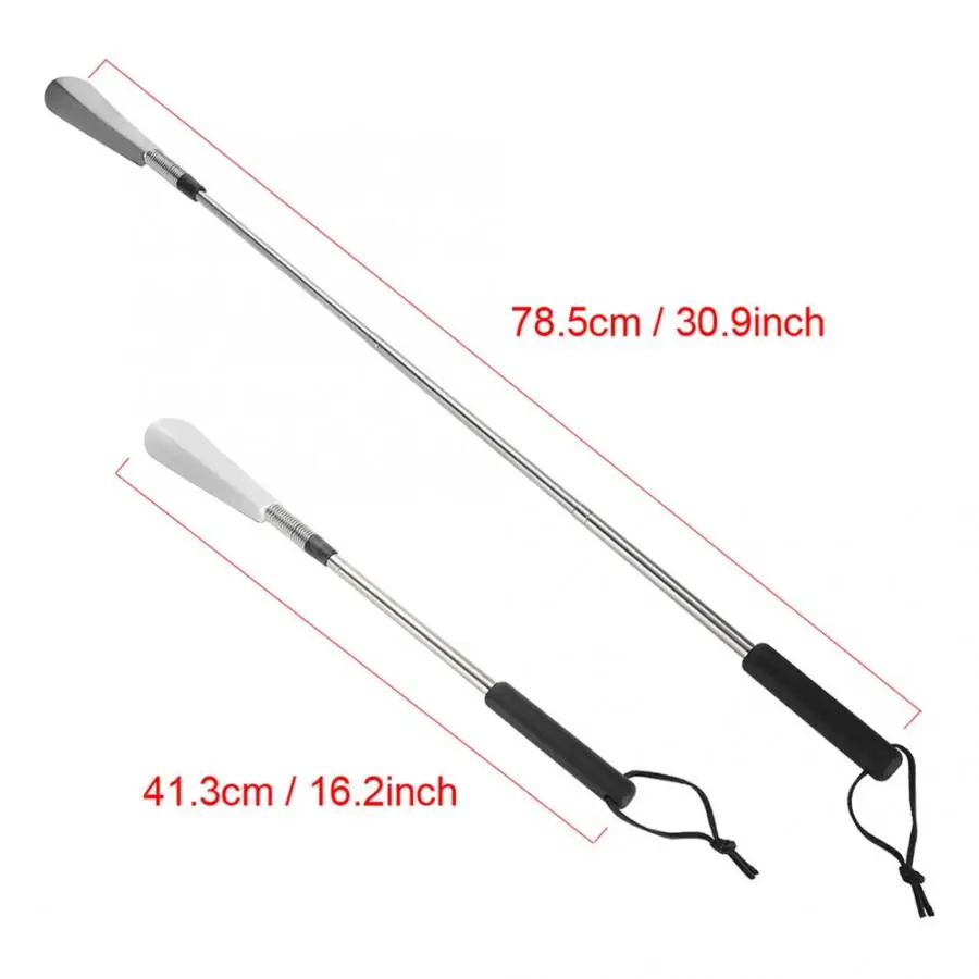 Этот продукт помогает соскользнуть ногу в обувь под любым углом и надеть обувь, не сгибаясь. Он изготовлен из нержавеющей стали, прочный для длительного использования. Телескопический дизайн, его можно отрегулировать в соответствии с вашими потребностями. Нескользящая резиновая ручка, легко крепится.