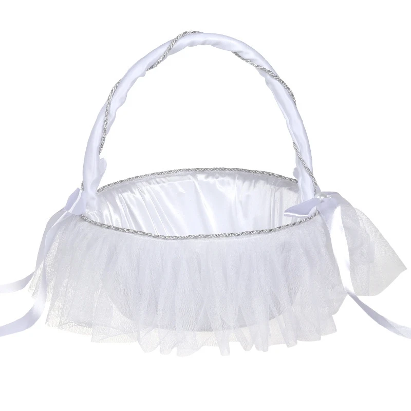 Отзывы о Романтическая белая атласная Свадебная церемония с бантом цветочная корзина для