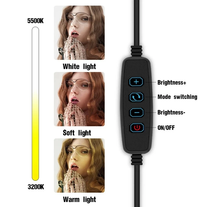 Светодиодная кольцевая лампа с регулируемой яркостью: с теплым/мягким/белым 3 вида цветов режимами освещения и регулируемой яркостью 10 уровней для выбора, кольцевая лампа может удовлетворить ваши различные потребности в освещении.