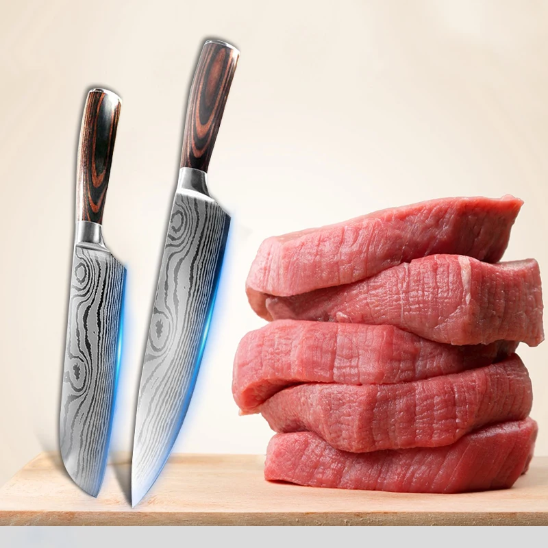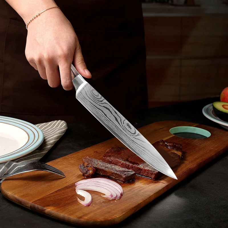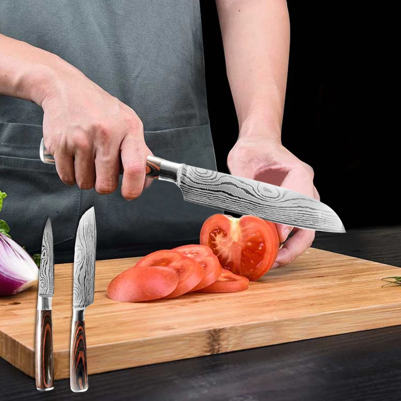 Набор ножей, кухонный дамасский лазерный узор, 6 шт., 440C, нержавеющая сталь, японский шеф-повар, нож для нарезки мяса, нож для рыбы, фруктовые ножи
