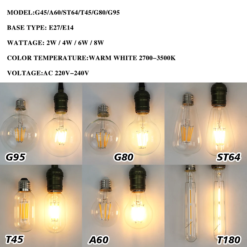 Отзывы о Винтажная светодиодсветодиодный ретро-лампа Эдисона E27 220 В 240 в стеклянная