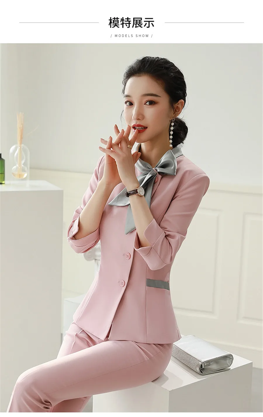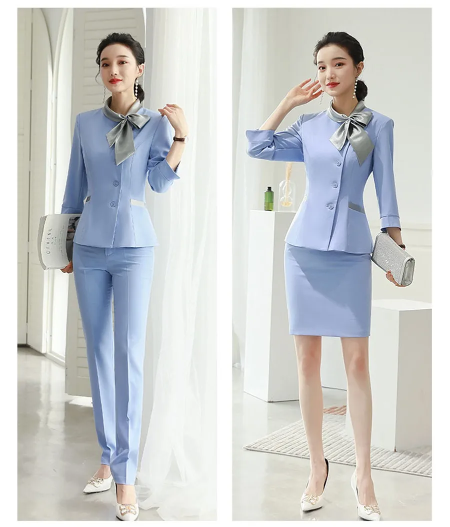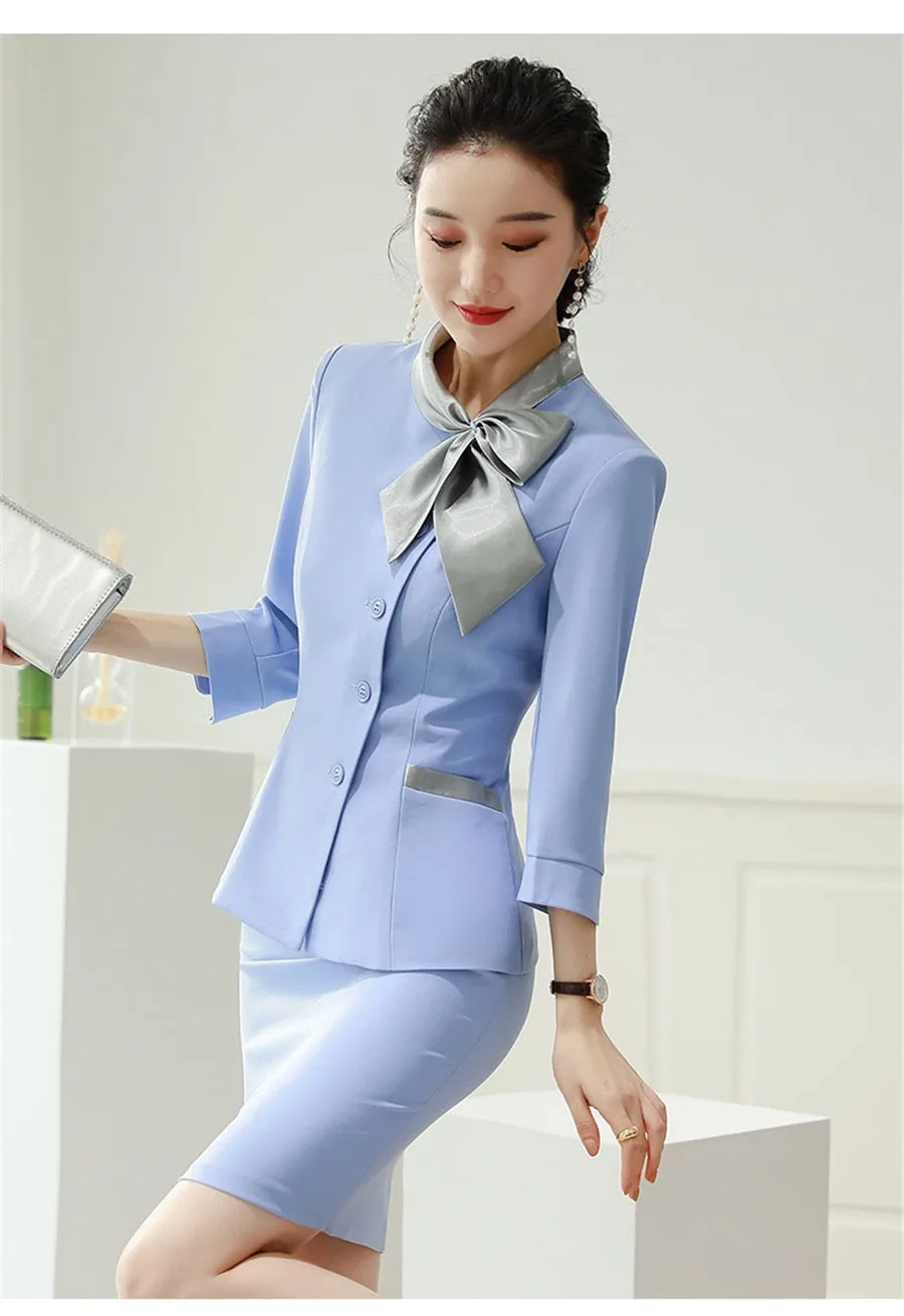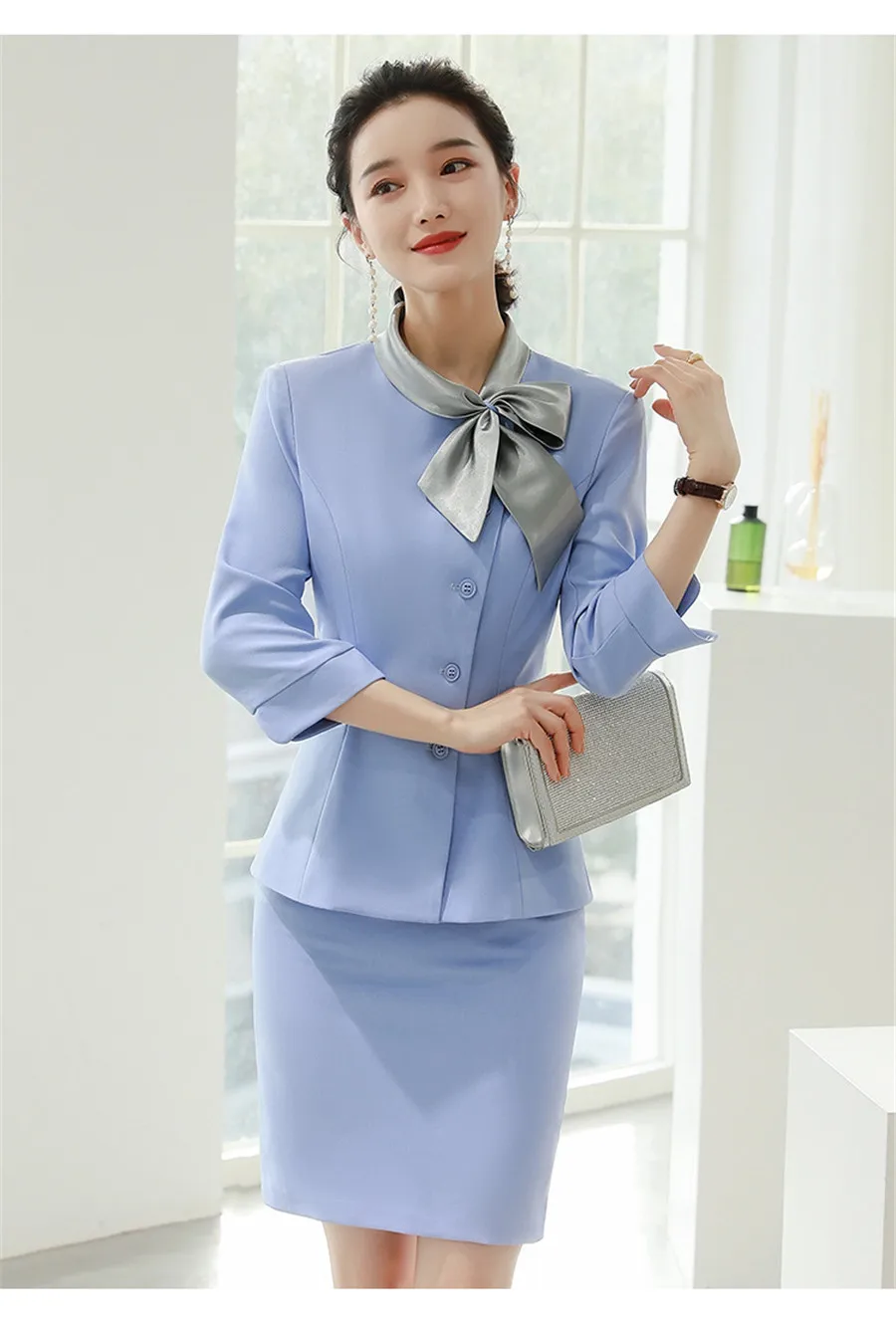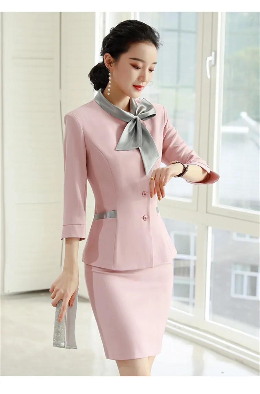 Отзывы о Розовый синий женский Элегантный Бант костюм с юбкой Костюмы офисная одежда