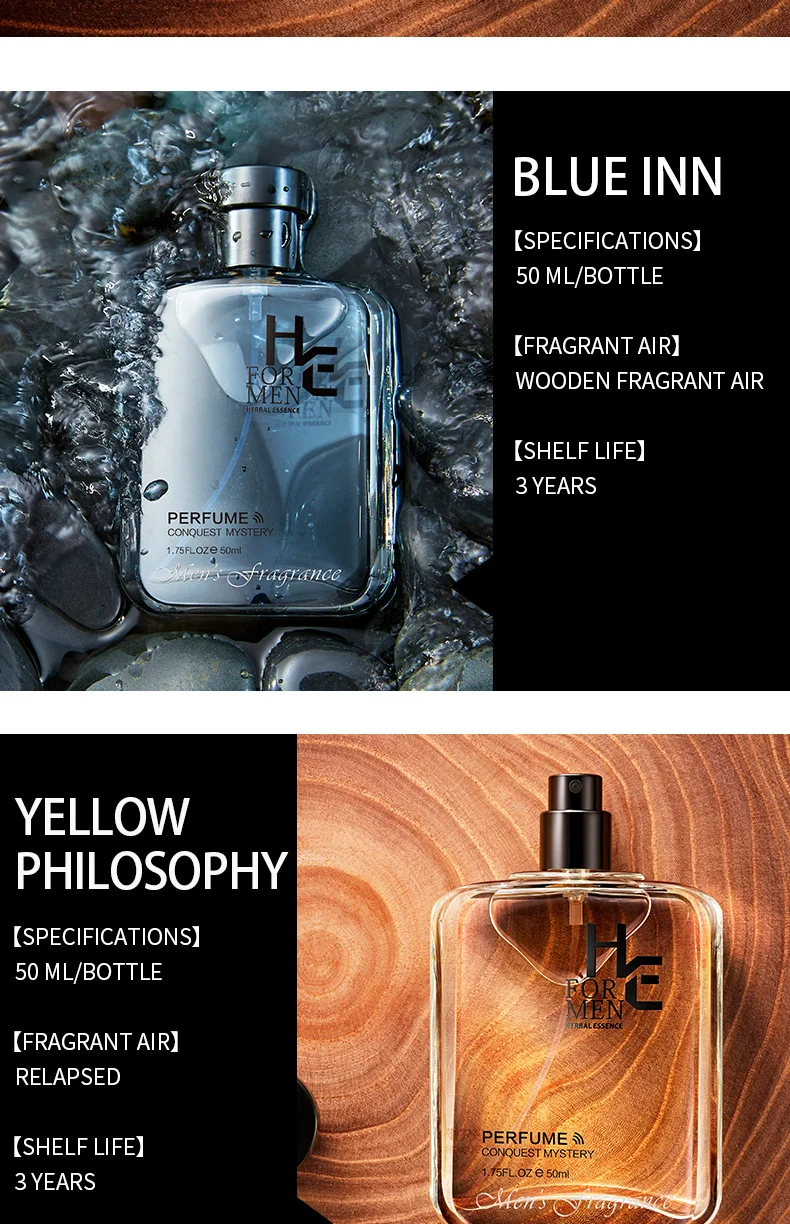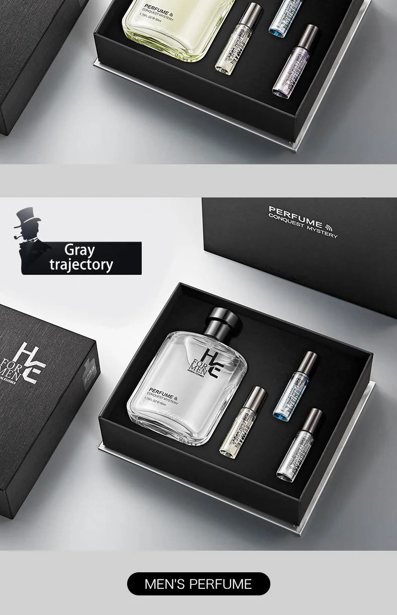 (H & E) Мужская Подарочная коробка с духами, стойкая эссенция, Туалетная вода 50 мл, чтобы отправить три образца (ароматизатор гулун, натуральный, свежий)