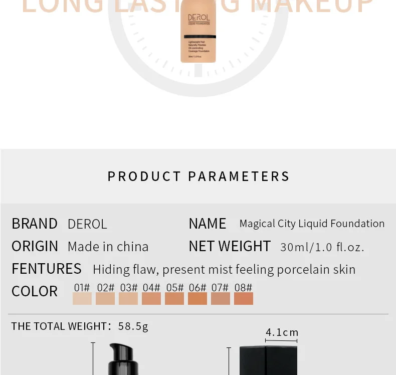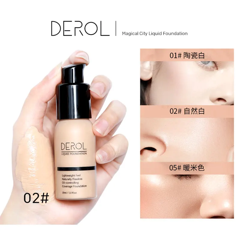 DEROL Base Face Liquid Foundation Cream Full Coverage Concealer Oil-control Easy to Wear Soft Face Makeup Foundation