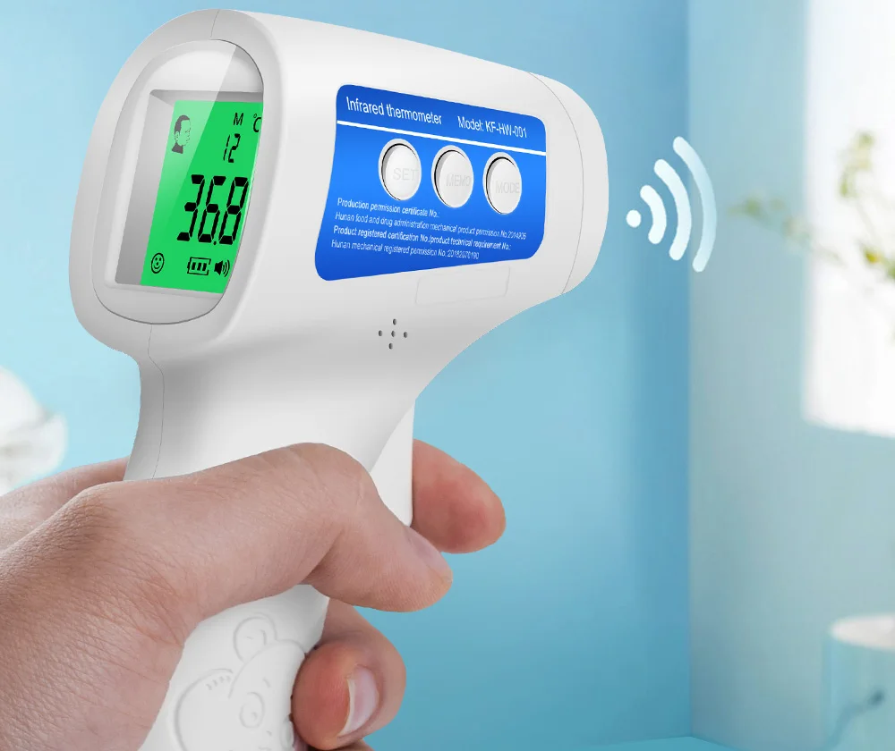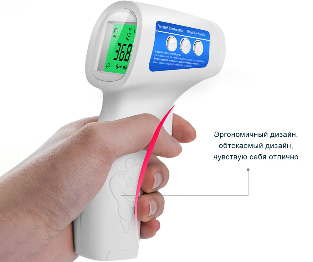 -Принцип Бесконтактный инфракрасный термометр состоит в том, чтобы использовать зонд для обнаружения при помощи инфракрасного излучения, температура тела человека. -Всего 1 секунду, покажет температуру.