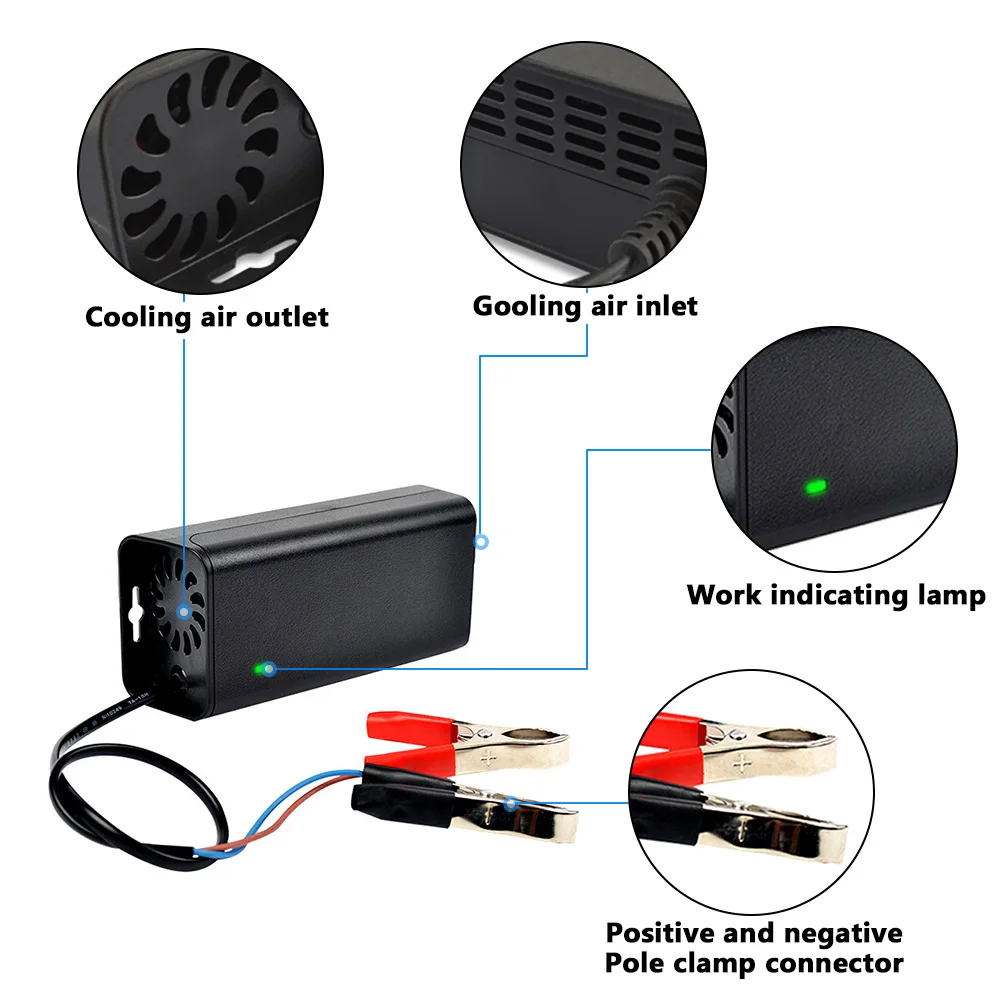 2. Это зарядное устройство использует трехфазный режим зарядки (режим зарядки ШИМ), который включает в себя фазу зарядки постоянного тока, фазу постоянного тока, плавающую фазу зарядки