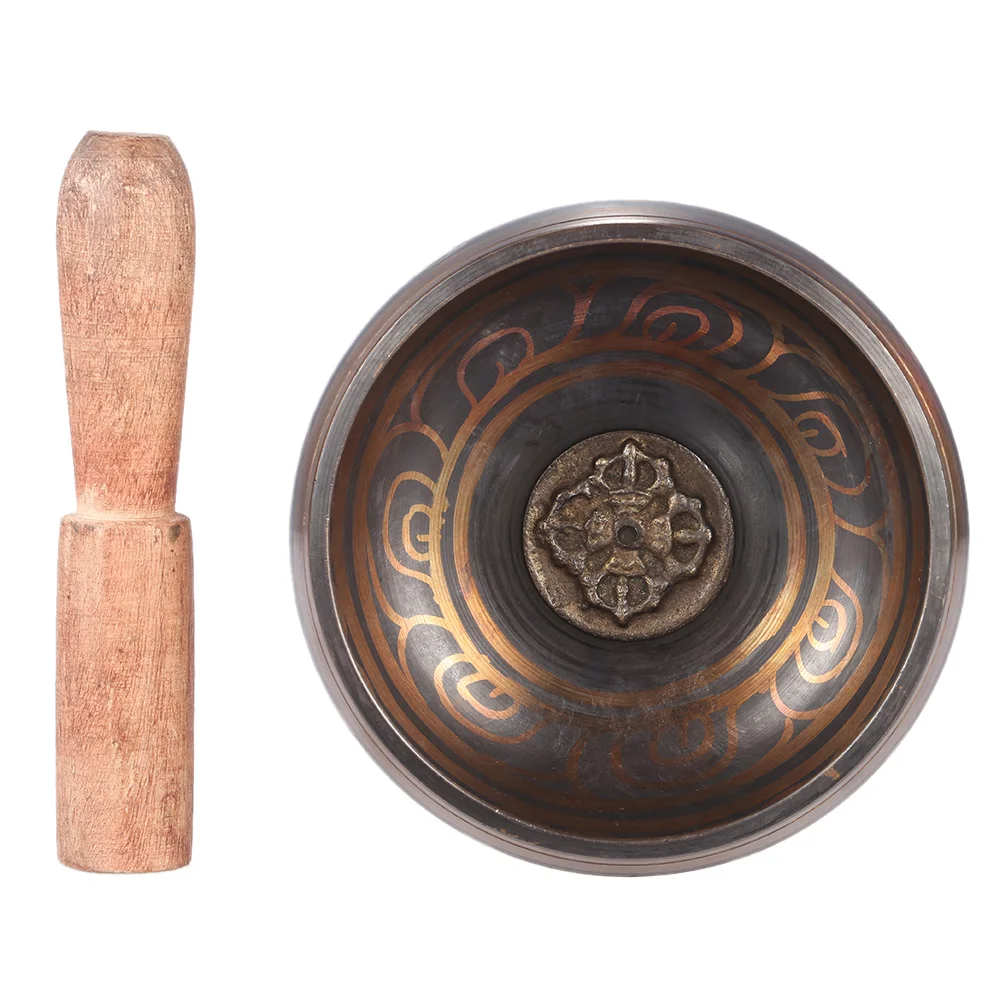 Изысканный 3,9 дюйма ручной работы тибетский колокольчик металлическая Поющая чаша с нападающим для буддизма буддистская медитация и заживление, релаксация