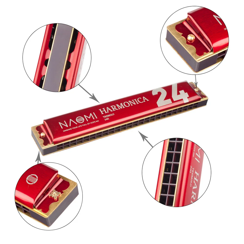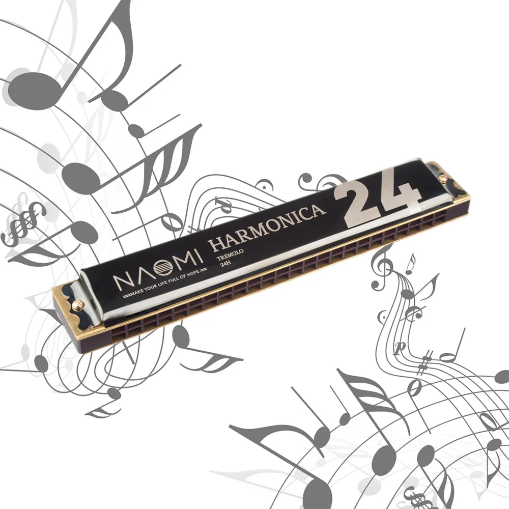 Великолепные 24 Отверстия tremolo harmonica, key of C, обеспечивают мелодичный и яркий звук; утолщенная пружина для вашей чувствительной и стабильной работы.
