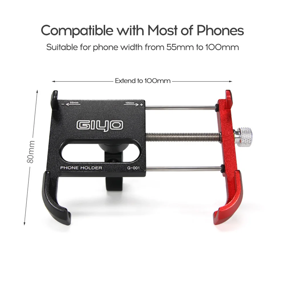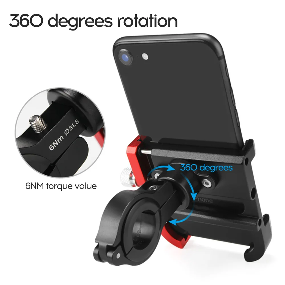 Кронштейн из алюминиевого сплава установлен на руле велосипеда, чтобы обеспечить удобство для езды на велосипеде. Он может вращаться на 360 градусов, ударопрочный и противоскользящий, подходит для ширины телефона от 55 мм до 100 мм.