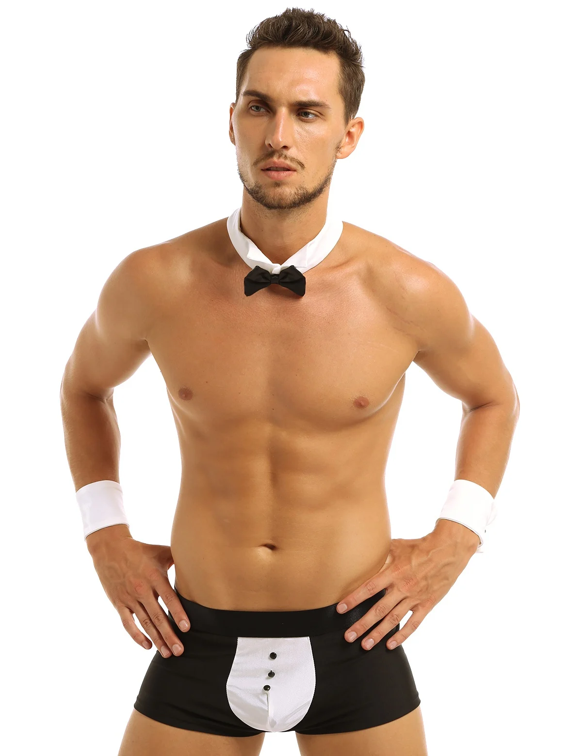 - Новинка, смокинг для официанта, мужской костюм, включает трусы-боксеры, одну пару браслетов и шею.