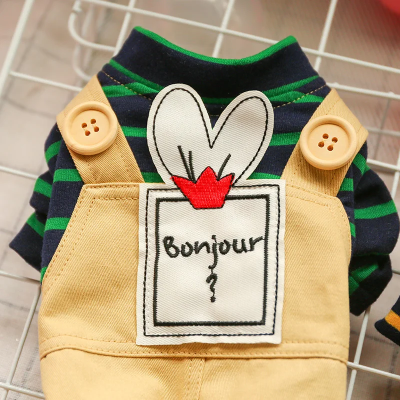 Новый весенний комбинезон для собак Bonjour, милые комбинезоны в полоску для собак, одежда для домашних животных XS S M L XL