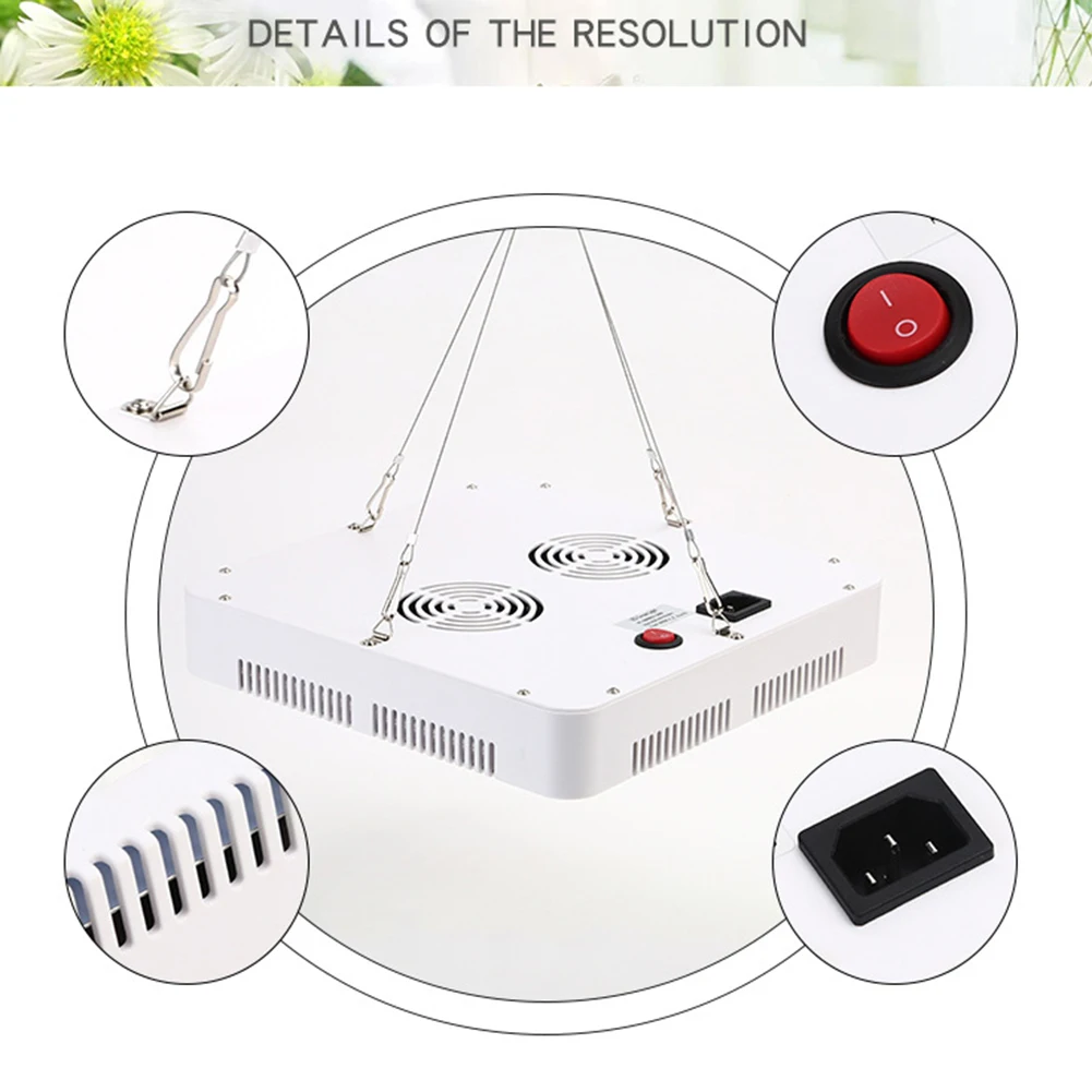 * 5. Сбоку на лампе для растений есть вентиляционные отверстия. Кроме того, установка высокоскоростного вентилятора для рассеивания тепла обеспечивает безопасное и эффективное рассеивание тепла во избежание повреждения растений. Использование двойных охлаждающих вентиляторов может продлить срок службы растительных ламп!