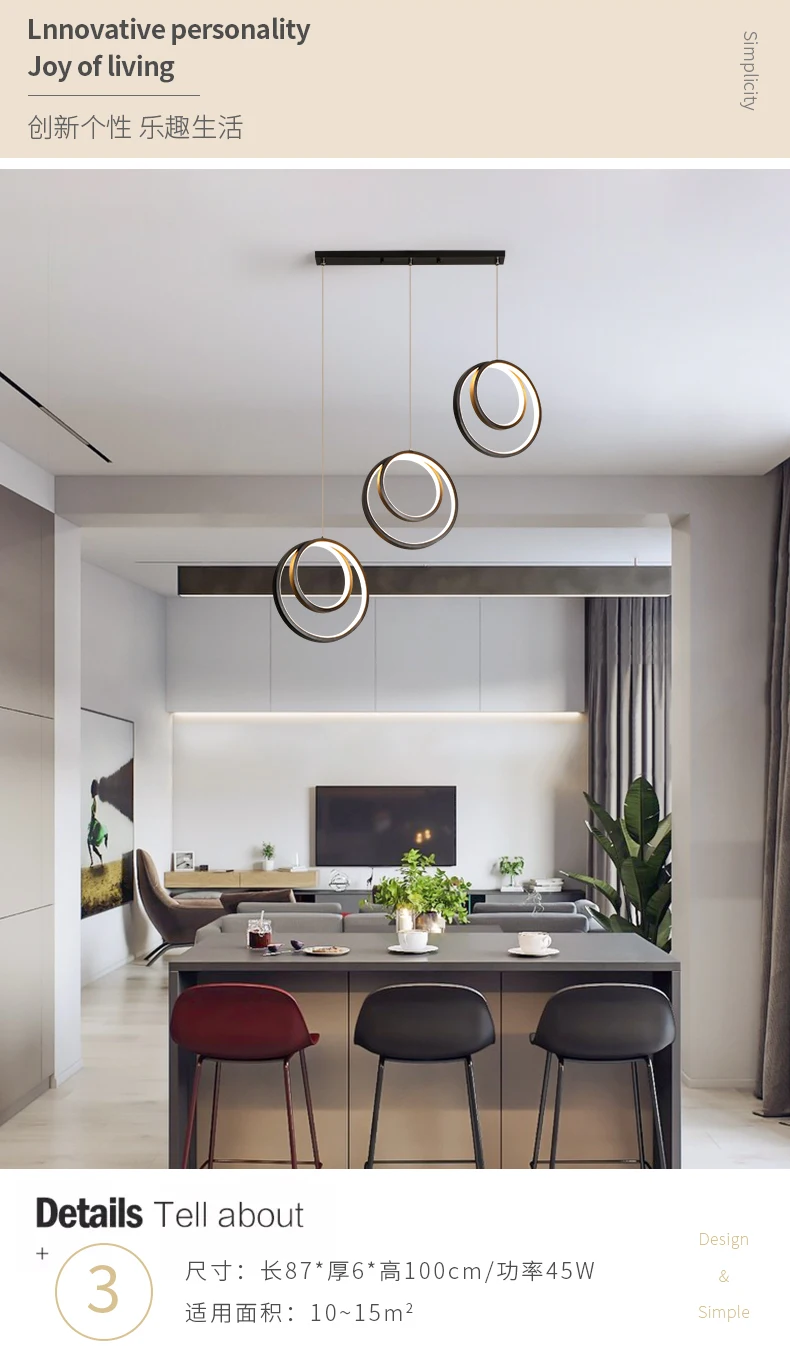 Отзывы о Современные Простые светодиодные подвесные светильники с кольцом и тремя