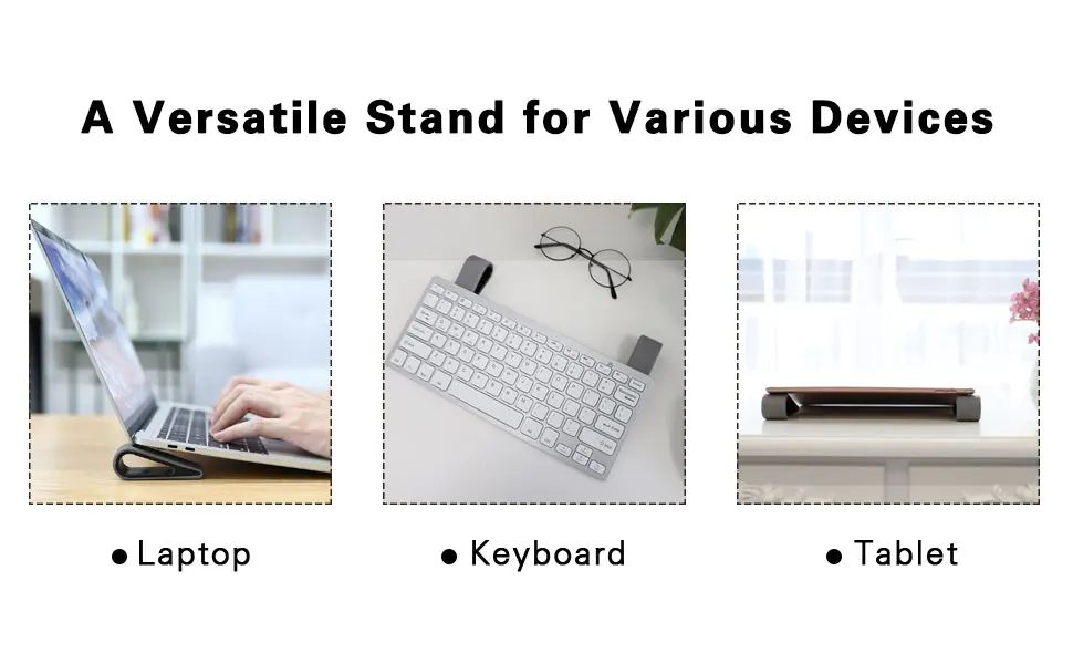 Широко используется: подставка используется для ноутбука, планшета, клавиатуры и т. д. Кроме того, противоскользящая подставка может быть размещена на любой плоской поверхности и надежно поддерживает ваши устройства, не отвлекаясь от отвлекающих факторов, вызванных ненужным перемещением и тряской.