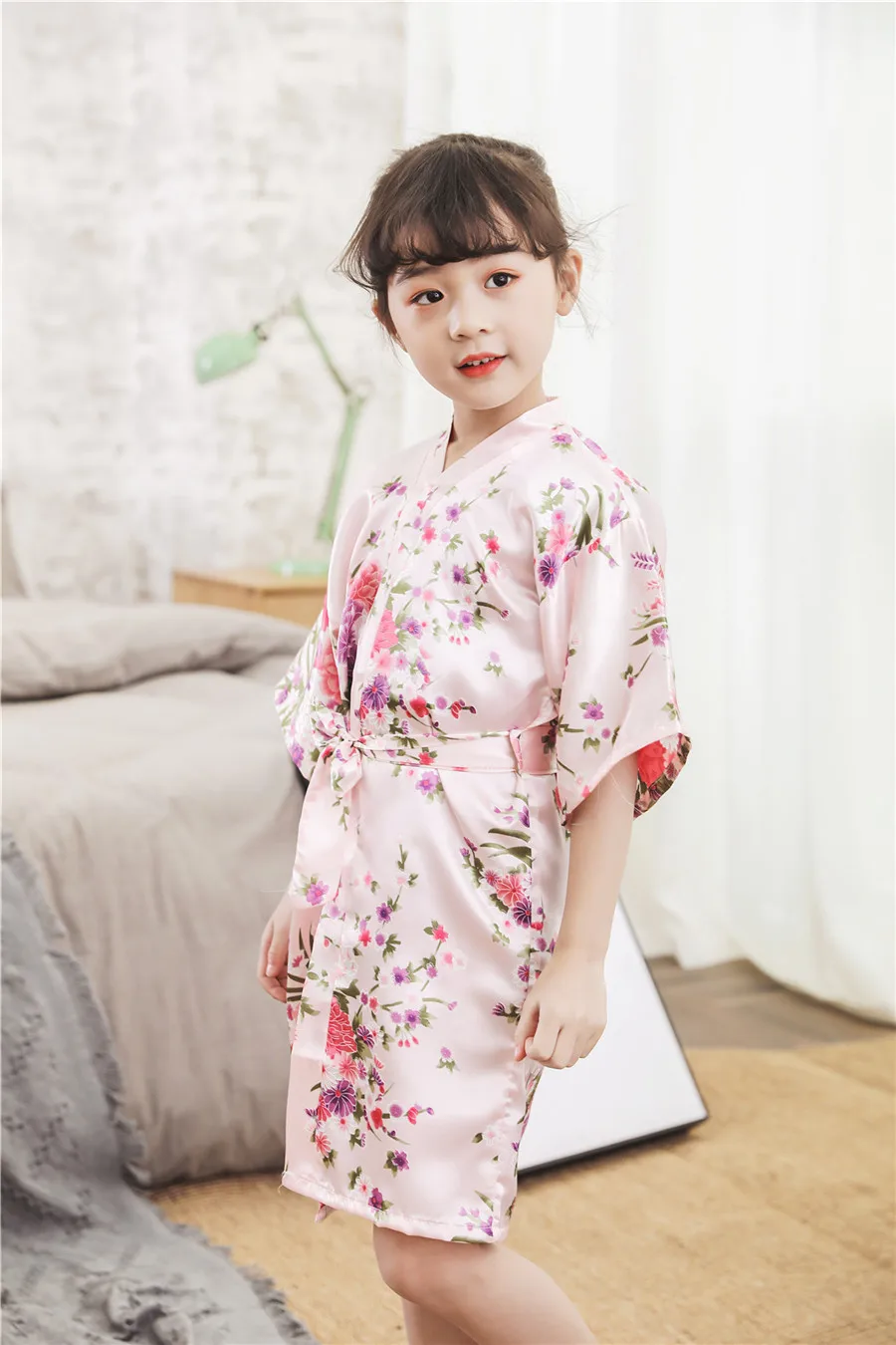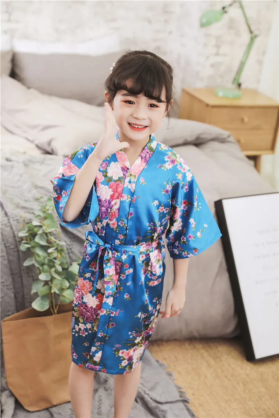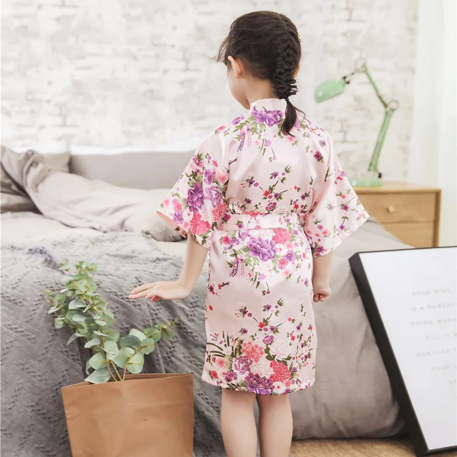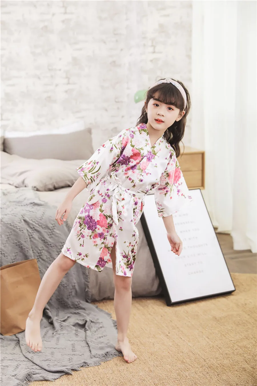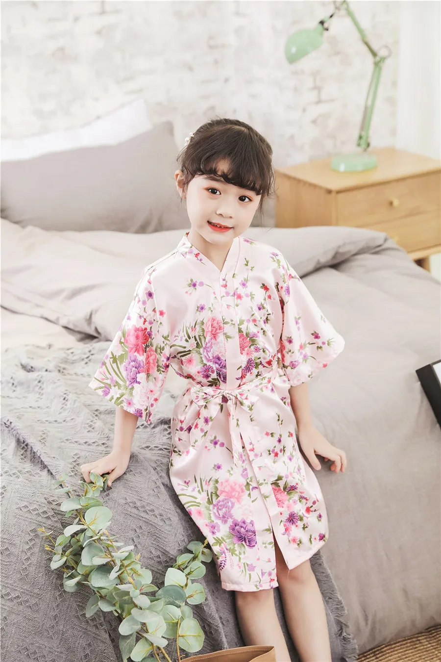 Dressing Gown Flower Ggirl Robe Silk Satin Kimono Robes Bathrobe Sleep wear Kids' things pajamatoddler nightgown 3-13Ys