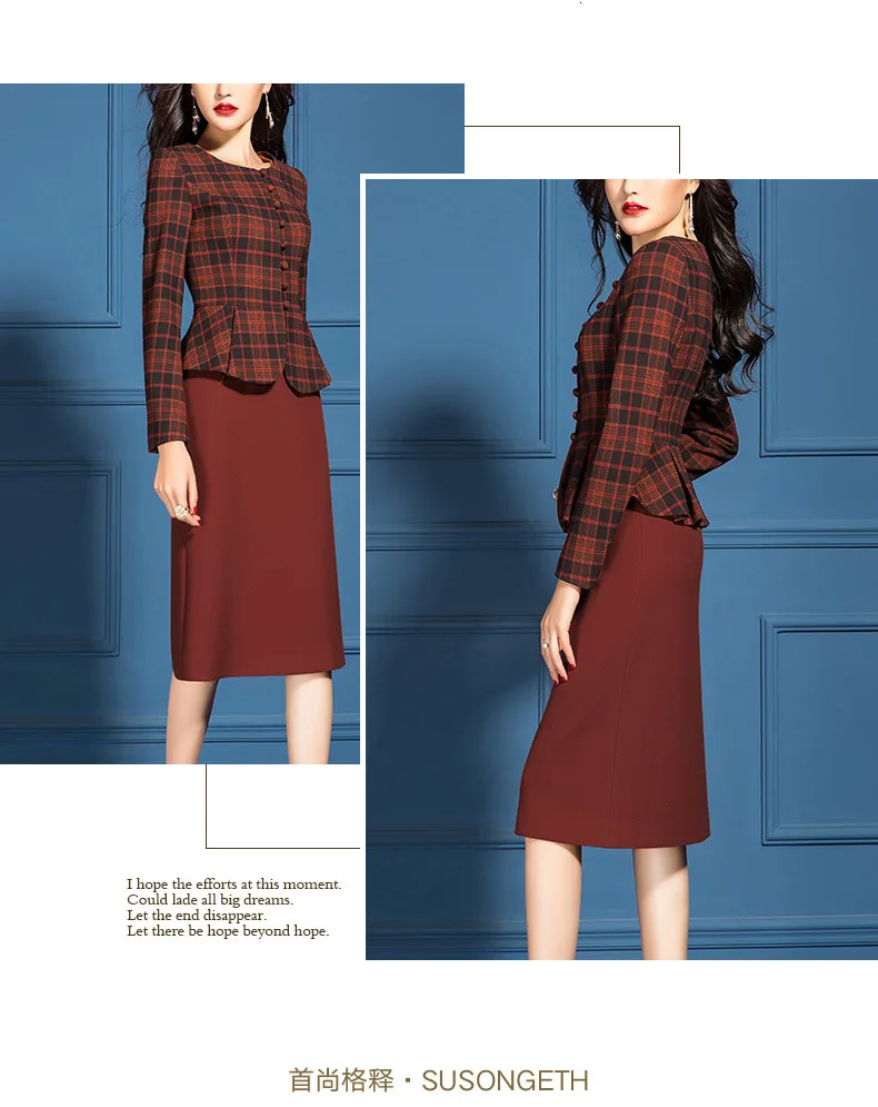 Отзывы о Женский офисный костюм элегантный винтажный клетчатый пиджак и платье длиной до