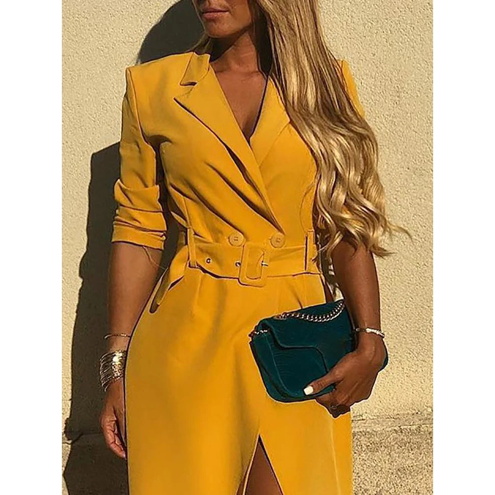 Отзывы о Женский блейзер с поясом пикантное уличное праздничное платье отложным