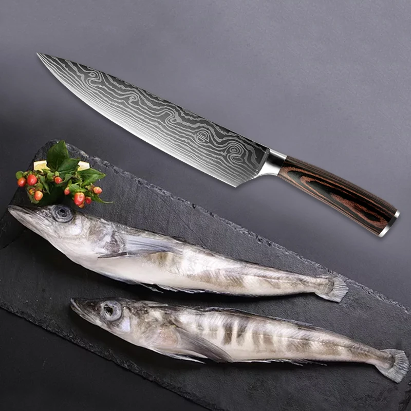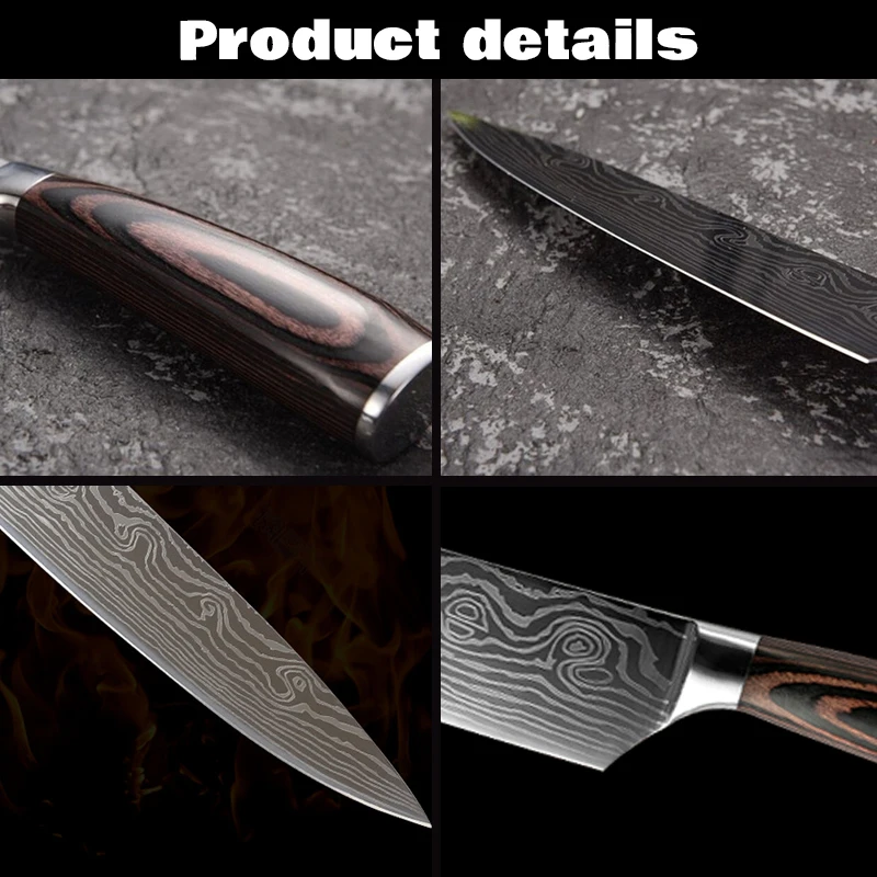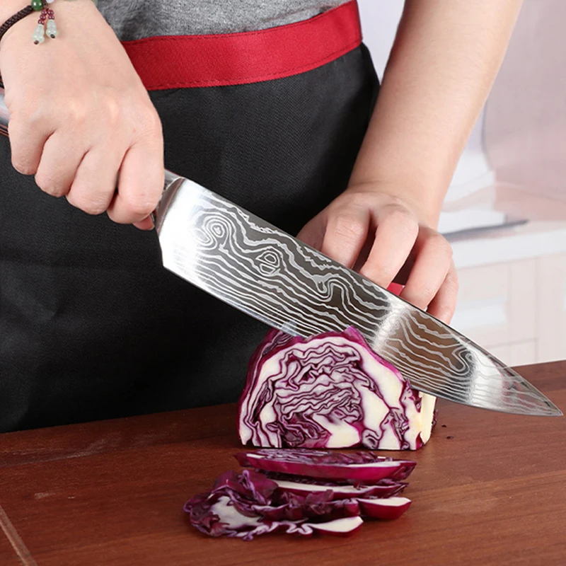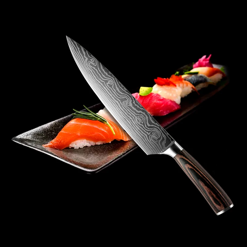 8 "профессиональный нож шеф-повара, бритва, острый 7CR1 7, нержавеющая сталь, ломтик, Кливер, лазер, Дамаск, мясо, овощи, инструмент Santoku