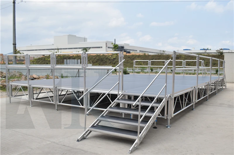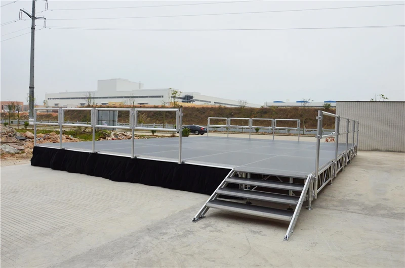 RK алюминиевая этап составлена с сценическая площадка, алюминиевый Держатель Скоба и регулируемые по высоте ножки. Высота алюминиевая сценевая регулируется. Есть кардан ножками, которая предназначена для неровной поверхности. Сцена платформа Высокая нагрузочная способность, может достигать до 1000 кг квадратных метров. Сценическая площадка поверхность дарит ощущение еще промышленного материала, ковер, отделка или стекло. Алюминиевый Этап может использоваться на улице и в помещении для мероприятий на открытом воздухе. Алюминиевая сценевая широко используется для концерта, музыкального фестиваля, повседневная обувь И т. д.