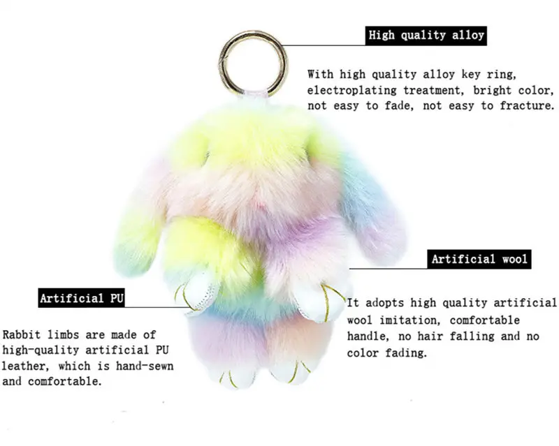 10 шт./партия цветной Радужный Kawaii плюшевый кролик брелок кролик кукла пушистый искусственный мех помпон кролик игрушки сумка брелок