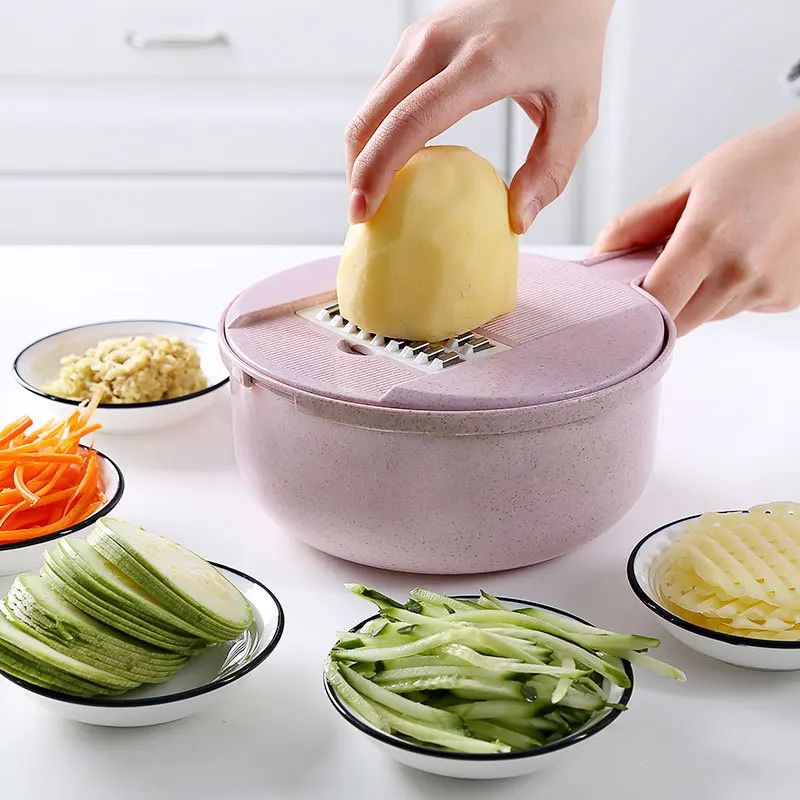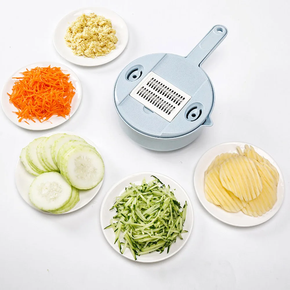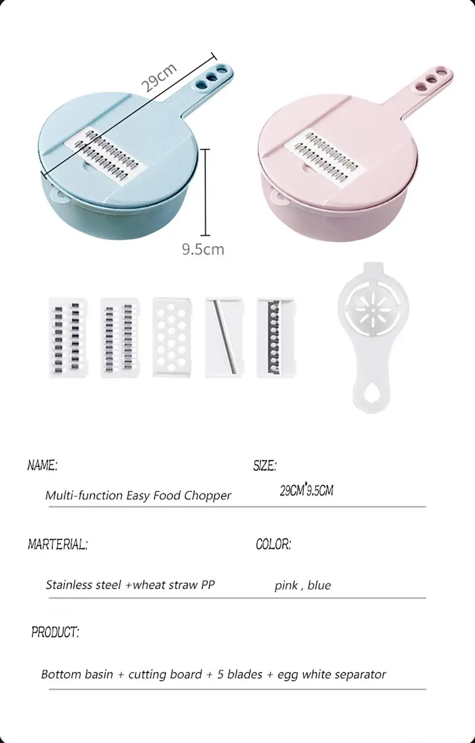 Дно резервуара для хранения + корзина для фильтра воды + разделочная основная доска + Овощечистка + сепаратор яичного белого цвета + ящик для хранения лезвий + защита рук + 5 лезвий