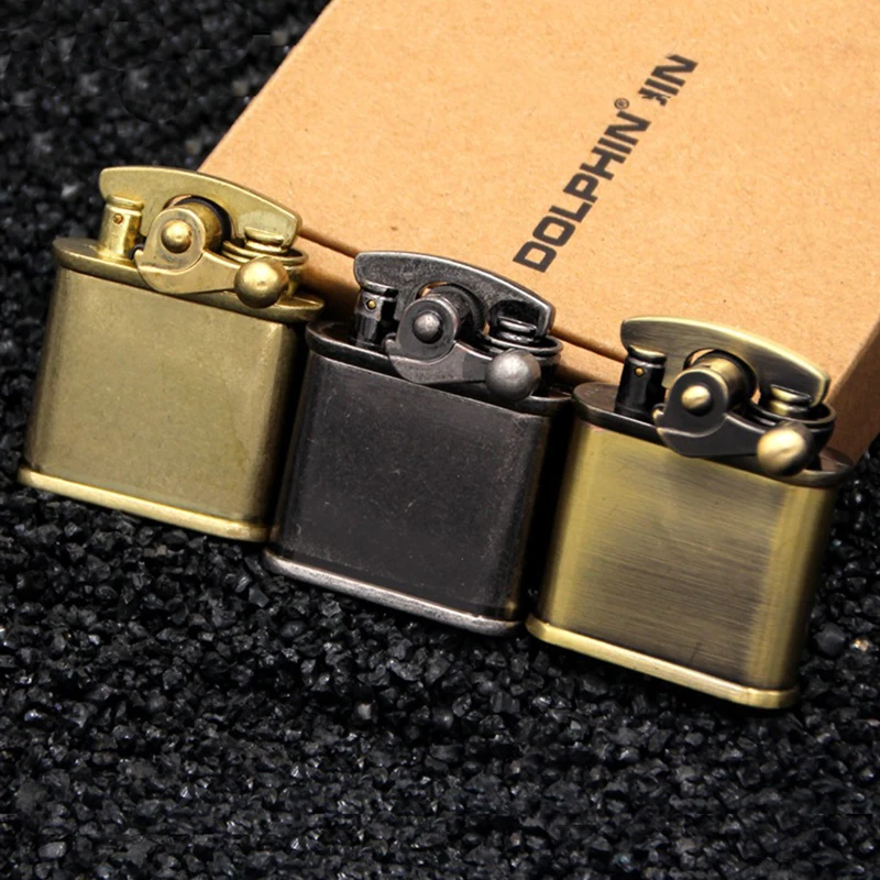 Винтажная Бесплатная пожарная зажигалка, шлифовальный круг, кремень, латунь, керосин, компактная зажигалка, бензиновая ветрозащитная зажигалка, гаджеты для мужчин