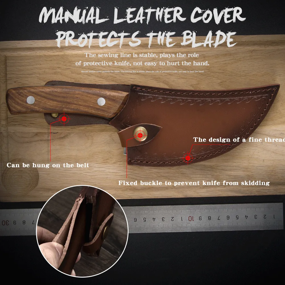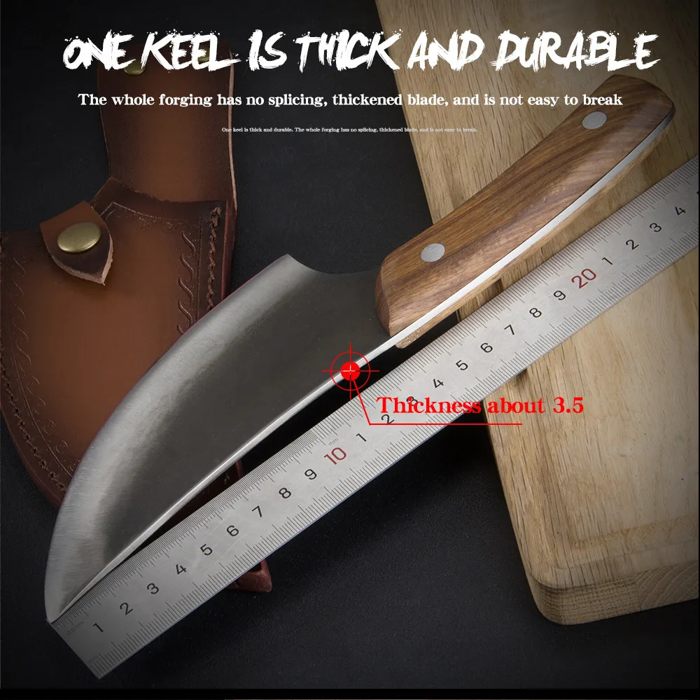 1. Ручная ковка: старинная ковка, Придерживайтесь гениальности, Ручная ковка кованым мастером, из тонкой стали и хорошей пластичности. 2. Материал из углеродистой стали: выбранная Высококачественная Высокоуглеродистая сталь, многократная ковка, высокое качество, высокая твердость и острое лезвие. 3. Деревянная ручка: ручка из твердой древесины, армирование заклепок, не легко деформируются, удобно держать в руке. 4. Использование и обслуживание: высушите воду после использования, поместите ее в вентилируемое и сухое место, Нанесите слой растительного масла на лезвие, если долго не используется d, не ставьте столовые приборы рядом с открытым пламенем, Или погружать в воду или коррозионную жидкость в течение длительного времени.