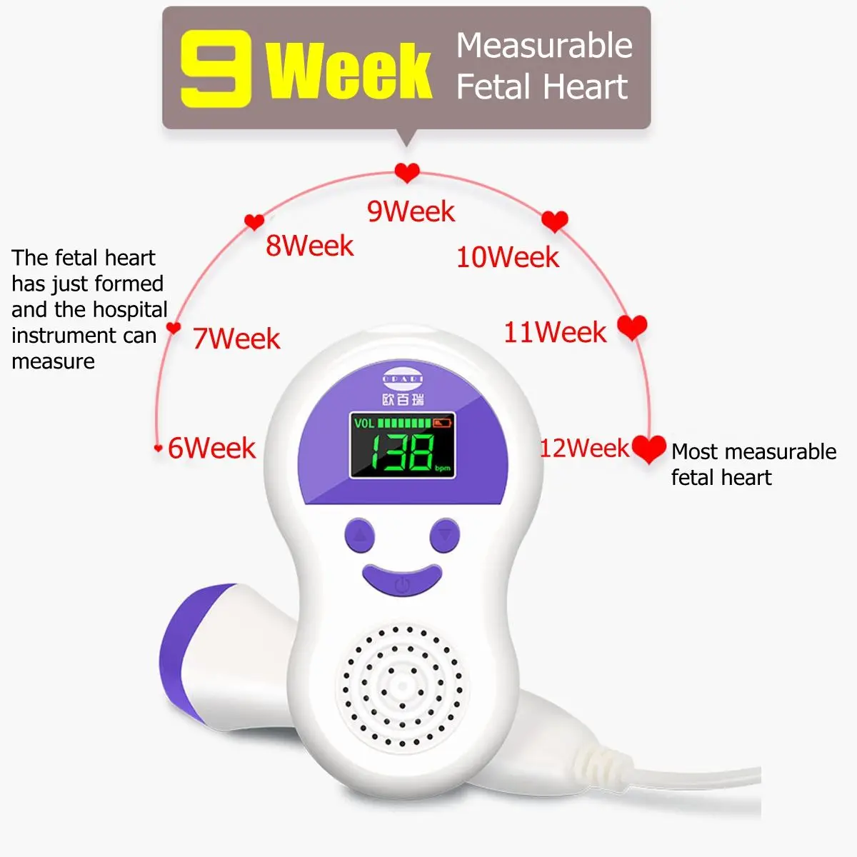 Особенности: 1. Чистый звук сердца плода:Высокая производительность чистый фетальный звук сердца. 2. Светодиодный дисплей:Многопараметрический режим работы и дисплей сердечного ритма плода, четкий FHR (частота сердечных сокращений плода) дисплей. 3. Высокая чувствительность:Медицинский класс, Высокочувствительный водонепроницаемый зонд, отсутствие излучения для обнаружения, низкая Ультразвуковая мощность, безопаснее для плода 4. Совместимость с наушниками и динамиками(Наушники в комплект не входят). 5. Идеально подходит для прослушивания и записи сердцебиения вашего новорожденного ребенка, когда она9 недель выше. 6. Легкий и удобный в переноске,Вы можете поделиться своей радостью-здоровым и сильным сердцебиением со своим любовником, семьей и друзьями, независимо от того, находитесь ли вы дома или на улице.