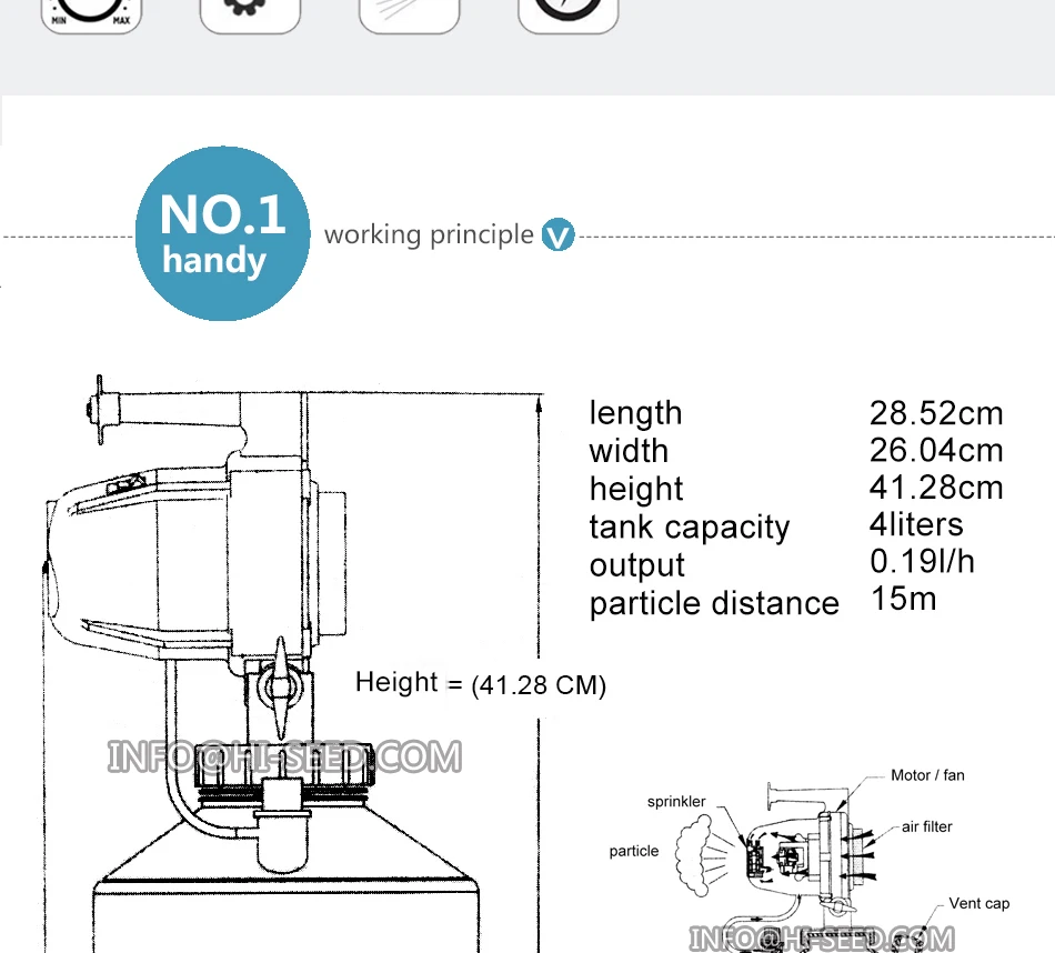 Эта машина предназначена для двойного назначения дезинфекции и инсектицида. Все контактные части аппарата изготовлены из специального промышленного пластика. Три Насадки, 4 "Диаметр впуска воздуха и моющийся фильтр для обеспечения низкой температуры работы головки машины, оснащен распылителем регулирующего клапана Подходит для различных эмульгируемых водных препаратов, это идеальное оборудование для дезинфекции и инсектицидных компаний. Основная цель: Анти-САРС, анти-денге боец · Изготовлен из полиэтилена высокой плотности промышленного пластика. Высокопрочная кислота и щелочь. Пероксиуксусная кислота может быть распылена. Название продукта 2792 ULV распылитель холодной воды Бренд HD Объем бака 4L Напряжение 220 В/110 в 50-60 Гц Мощность 1000 Вт Размер 25*42*25 см Распылительная насадка 210 мм Объем распыления 0-19 л/ч Размер капли 7-30 мкм Длина кабеля 5 м